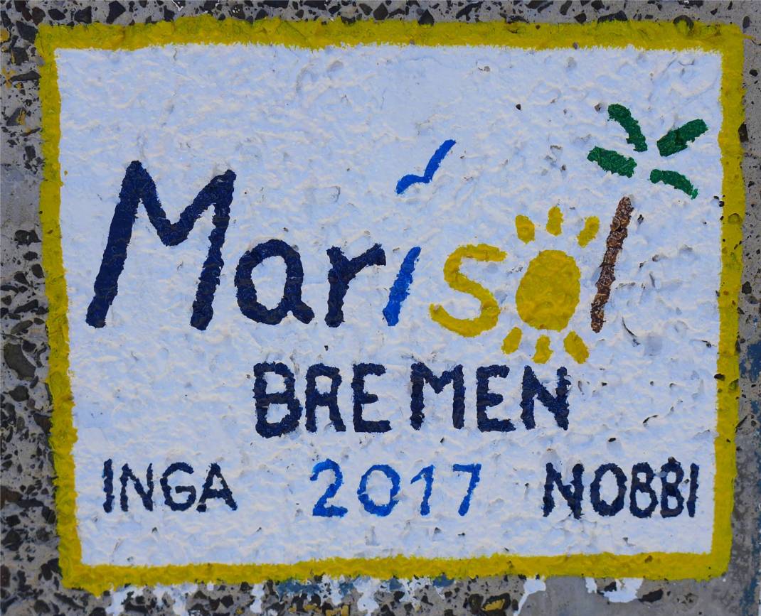 Auf der Hafenmole Porto Santos haben sich unzählige Segler verewigt, man hinterlässt sein Logo oder seinen Schiffsnamen. Jedes Mal wenn wir an der langen Mole entlang laufen fallen uns Namen auf, die wir zuvor übersehen haben. Es gibt bunte und einfache, kreative und lustige Ideen. Wir sehen die Logos von Schiffen, die wir kennen und Namen von Schiffen und Crews, deren Blogs wir gelesen haben. Auch wir wollen natürlich unser Marisol-Logo an der Mole hinterlassen und so habe ich die letzten Tage daran gearbeitet. Seit heute besitzen wir auch ganz dünne Pinsel, hätte ich die am Wochenende bereits gehabt, wäre es viel einfacher gewesen. Das nächste Mal. Während des Malens hatte ich viel Unterhaltung. Am Freitag lag ein Kreuzfahrtschiff vorm Strand, die Passagiere sind mit Booten in den Yachthafen gebracht worden und dort an Land gegangen. Ich habe mich nett mit der Crew unterhalten und den zum Teil sehr lustigen Gesprächen der Passagiere gelauscht. Da es sich um ein deutschsprachiges Schiff handelte, musste ich mich nicht mal besonders anstrengen. Samstag und Sonntag habe ich alle Autos der Insel mehrfach gesehen. Da die Insel so klein ist, hat der Autofahrer anscheinend wenig Auslauf. Man fährt also die Hafenmole entlang, dreht am Leuchtturm um und fährt wieder zurück. Und weil’s so schön war gleich nochmal. Wir kennen nun alle Autos der Insel und die ca. 20 Taxis. Lustiger weise sind die Taxis 4-stellig nummeriert, wobei die ersten 3 Ziffern meist aus Nullen bestehen. Man denkt halt an die Zukunft und will für das Wachstum gewappnet sein.