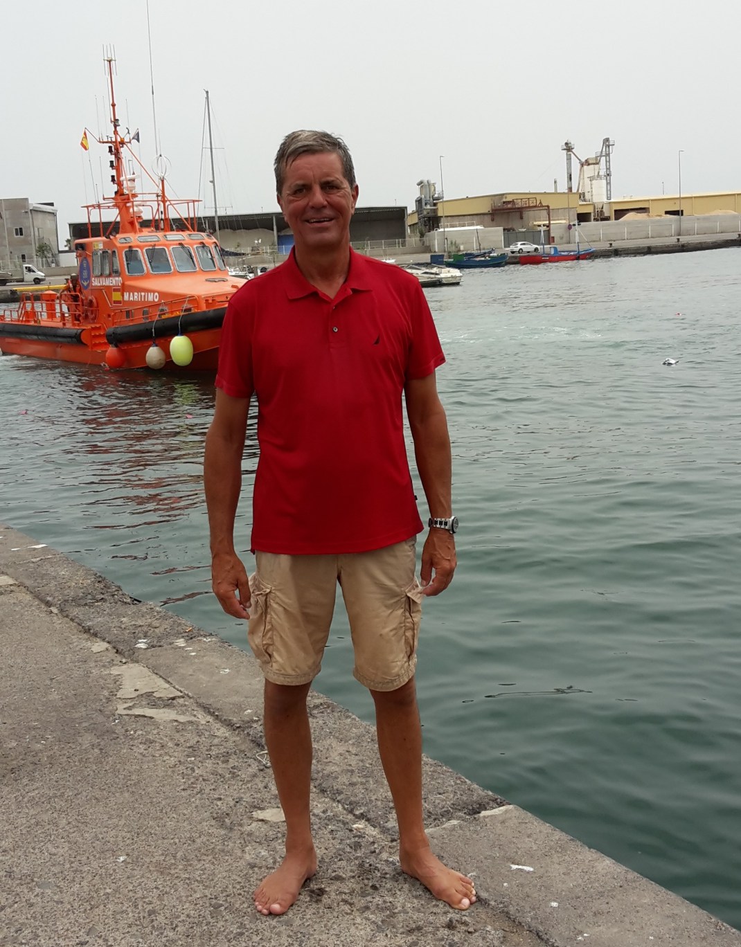 Nachmittags wollten wir zur Werft fahren, uns das Gelände ansehen und nach den Preisen fragen. Der Bus brachte uns in 12 Minuten zum Fischereihafen und dank Google Maps wussten wir wie das Gebäude aussieht, das wir suchten. Als wir gerade um einen Schuppen biegen und ans Hafenbecken kommen, sagt Nobbi plötzlich: „Guck mal! Das Auto fährt ins Wasser!“ und rennt los. Er hatte recht, ein kleines goldenes Auto treibt im Hafenbecken. Ich renne in die erste geöffnete Tür, lande in einer Lagerhalle und rufe nach Hilfe. Zum Glück taucht schnell ein Mann auf und läuft mit mir zusammen zum Hafenbecken. Dort sehe ich gerade noch wie Nobbi, der Handy, Portemonnaie und Sonnenbrille auf einem Poller deponiert hat, ins Wasser springt. Das Auto schwimmt noch, doch zwei Frauen sind noch im Auto und schreien. Kurz bevor Nobbi das Auto erreicht, gelingt es beiden Frauen aus dem Fenster zu klettern. Die jüngere der beiden (die Tochter der anderen?) kreischt und planscht, so dass wir Angst haben, dass sie nicht schwimmen kann. Nobbi packt sie und beginnt sie abzuschleppen, da beruhigt sie sich und schwimmt die letzten Meter schließlich alleine. Inzwischen sind mehrere Männer dazu gekommen, werfen Rettungswesten ins Wasser oder springen auch ins Wasser um zu helfen, die Tochter wird auf ein Fischerboot gezogen und Nobbi klettert an einer Leiter aus dem Wasser. Die Situation scheint unter Kontrolle, das Auto schwimmt noch, die andere Frau schwimmt mit zwei Männern in Richtung Hafenmauer. Plötzlich beginnt die Frau zu schreien, schlägt nach den Männern, macht sich los und schwimmt zurück zum Auto. Nun bricht Chaos aus, das Auto versinkt im Hafenbecken und ein Schiff der Lebensretter kommt angeschossen und zieht die Frau aus dem Wasser. Kurz darauf trifft die Polizei ein, zwei Polizisten springen auch noch ins Hafenbecken. Nach ein paar Minuten steht die Pier voll mit Autos, Policía Marítima, Polícia National und Polícia Portuaria, dazu zwei Rettungswagen. Zum Glück scheinen es beide Frauen unverletzt überstanden zu haben, auch wenn wir nicht wissen, was eigentlich genau passiert ist. Die Polizisten sind sehr nett und bedanken sich bei Nobbi für seinen Einsatz. Es findet sich ein in Hamburg geborener Polizist, der perfekt Deutsch spricht und die Zeugenaussage aufnimmt. Dann beginnen Taucher der Polizei das Auto zu bergen. Nobbi ist, abgesehen von seinen Schuhen, die er vor seinem Bad auf der Pier zurückgelassen hat, komplett nass. Bei 28 Grad ist das jedoch nicht weiter schlimm und er ist schnell getrocknet. Leider hat das Handy mit der spanischen SIM-Card, das in der Hosentasche steckte, das Bad nicht überlebt.