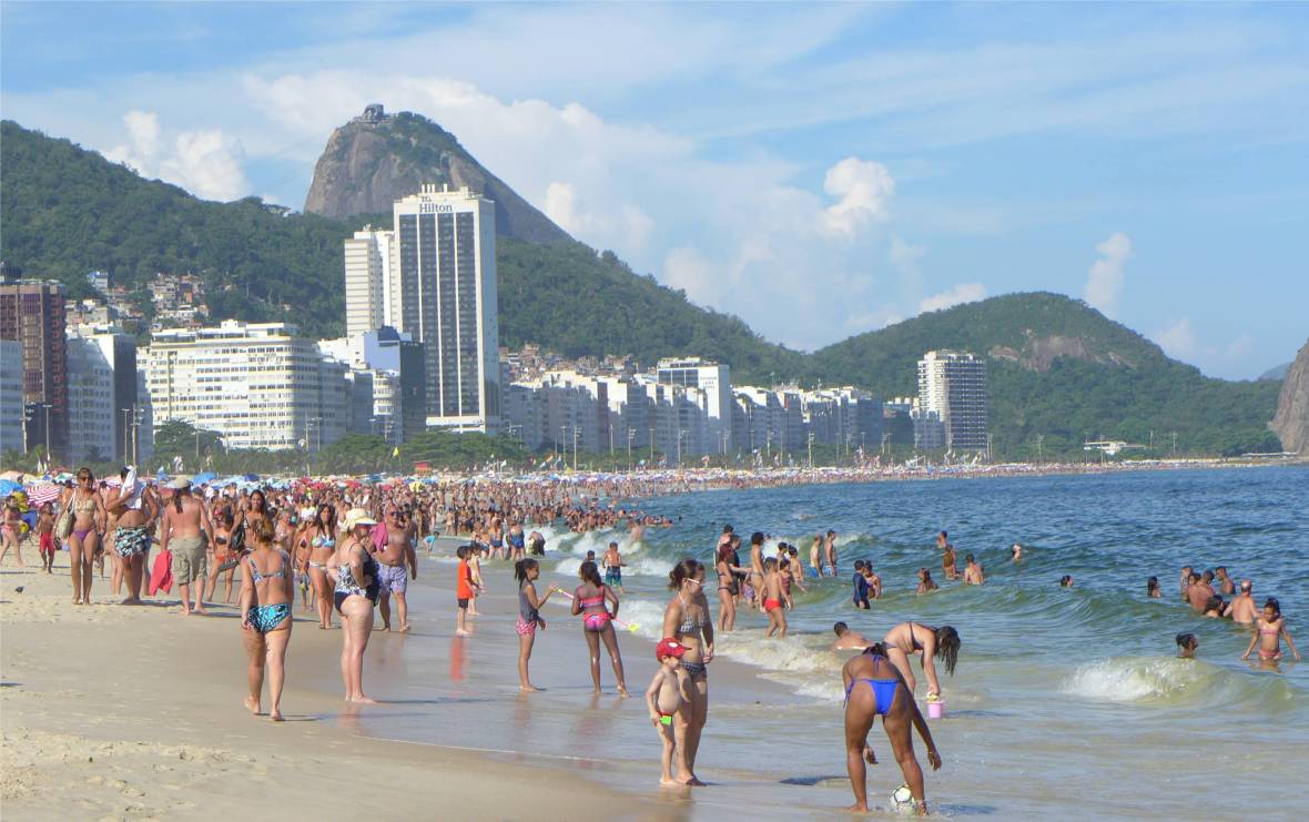 Rio Copacabana voll und leider ziemlich schmutzig