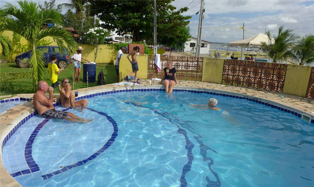Nebenbei haben wir Maris Rumpf geputzt, vom Beiboot aus war das eine sportliche Veranstaltung. Dabei haben wir leider festgestellt, dass Mari lauter ganz kleine schwarze Punkte hat. Anscheinend wurde in Salvador der Steg gemalt als wir nicht da waren. Es wird also noch weitere Trainingseinheiten geben. Vorhin hat Nobbi hundert Euro gespart. Hundert Euro soll es kosten das Schiff von unten reinigen zu lassen, Maris Bauch ist aber noch recht sauber, so dass wir das für teuer halten. Nobbi ist bei wenig Strömung in den Fluss gesprungen, hat unseren Impeller gängig gemacht und den Propeller gesäubert.