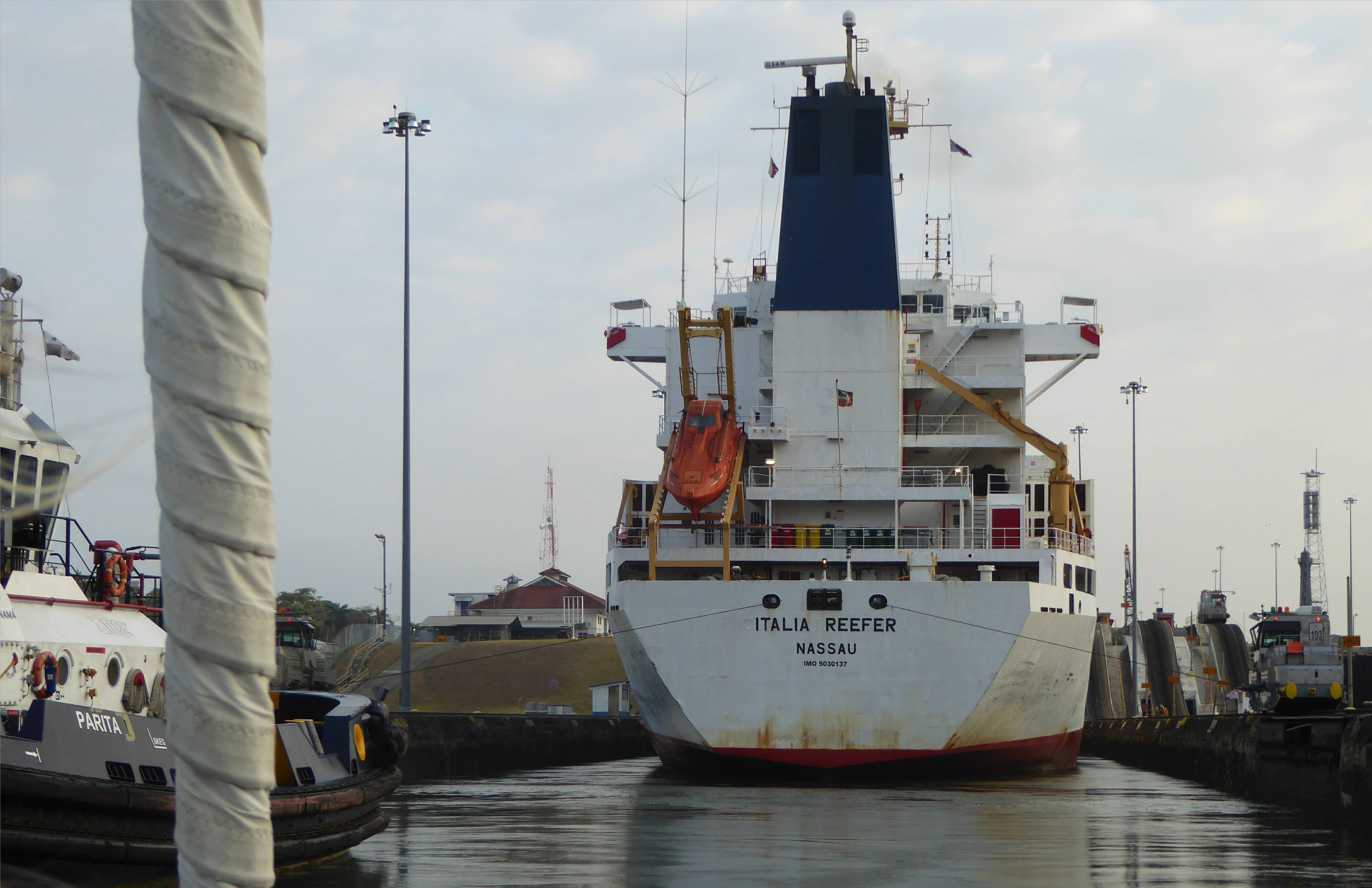 Panamakanal Gatunschleuse wir gehen hinter dem Grossen in die Kammer