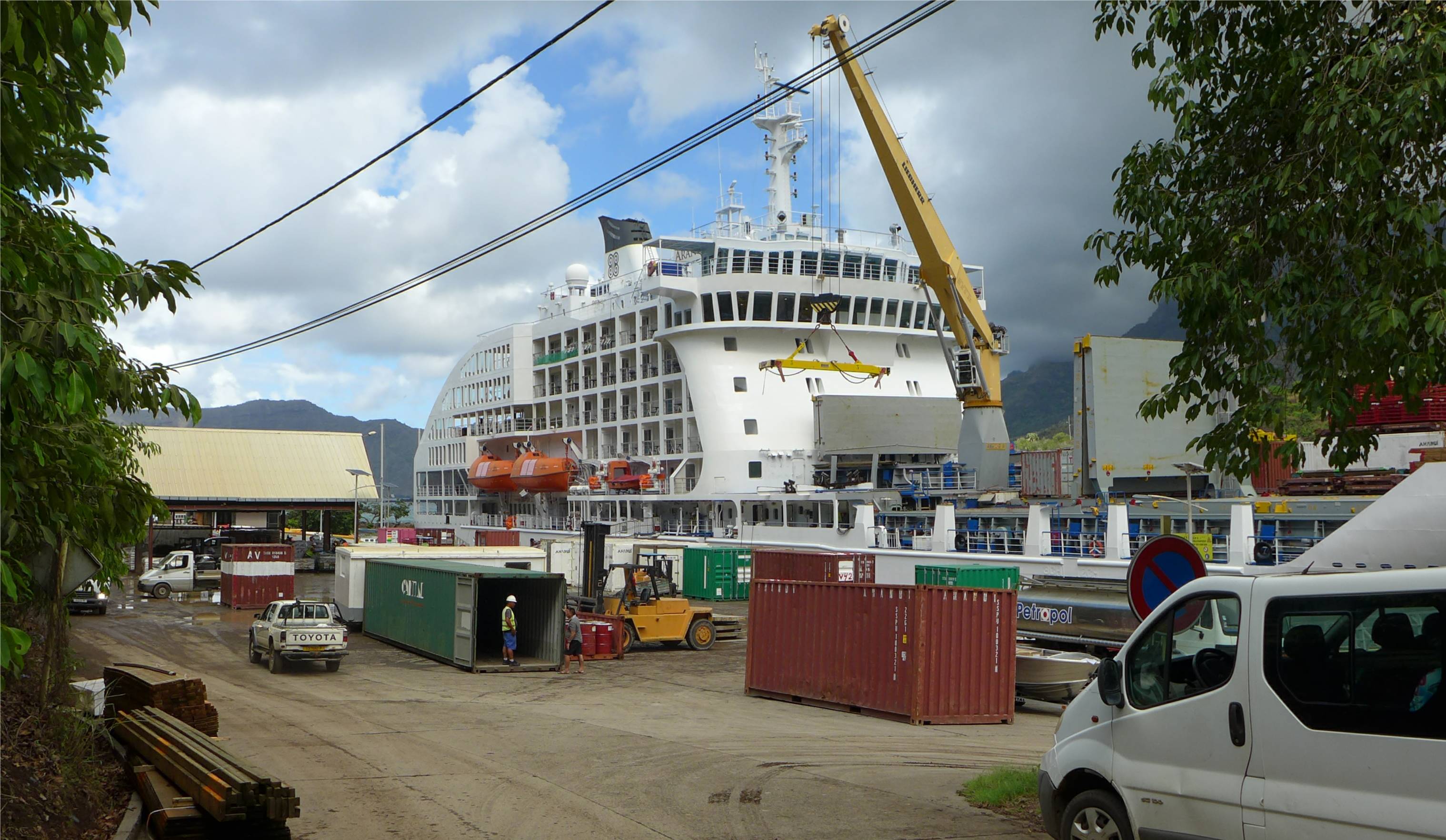 FP Hiva Oa Hafengewusel Entladen der Aranui