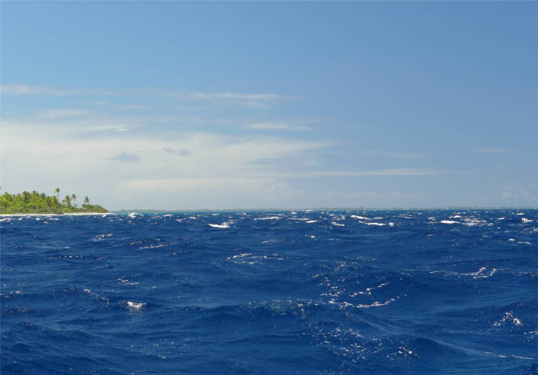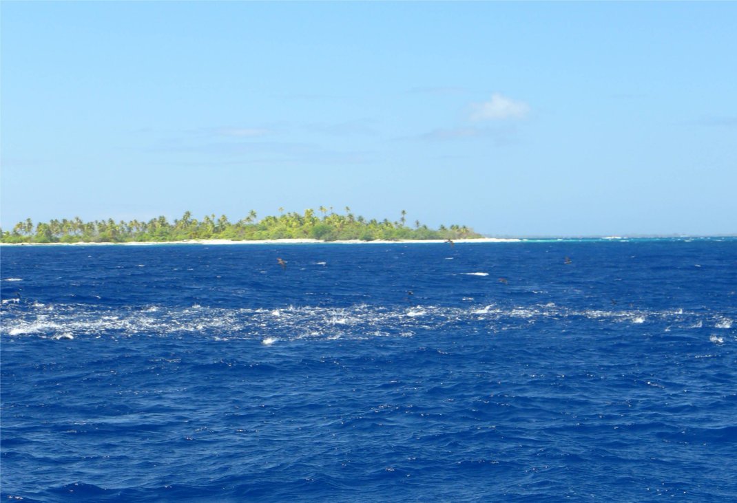 Fünf Windstärken aus Ost bescheren uns eine flotte Fahrt. Die Wellen sind mit einem Meter fünfzig sehr angenehm, nur ab und zu kommt eine Wolke und bringt uns ein paar Böen. In der Nacht nimmt der Wind immer weiter zu, leider auch die Wellen. Nun haben wir sechs Bft in Böen sieben bis acht. Mari zeigt sich völlig unbeeindruckt, wir rauschen dahin. Es macht richtig Spaß, nur die Regenschauer stören. Der Spaß wäre ungetrübt, wenn wir nicht ein Atoll anlaufen wollen würden. Diesen starken Wind und die hohe Welle können wir in einem engen Pass nicht brauchen. Wir haben uns vorher verschiedene Möglichkeiten durchgeplant und entscheiden uns nun für den Nord-Pass von Fakarava. Der Pass ist breit, der breiteste in Französisch Polynesien, und er liegt auf der Nordseite des Atolls, bei Südost Wind also auf der Wind abgewandten Seite.