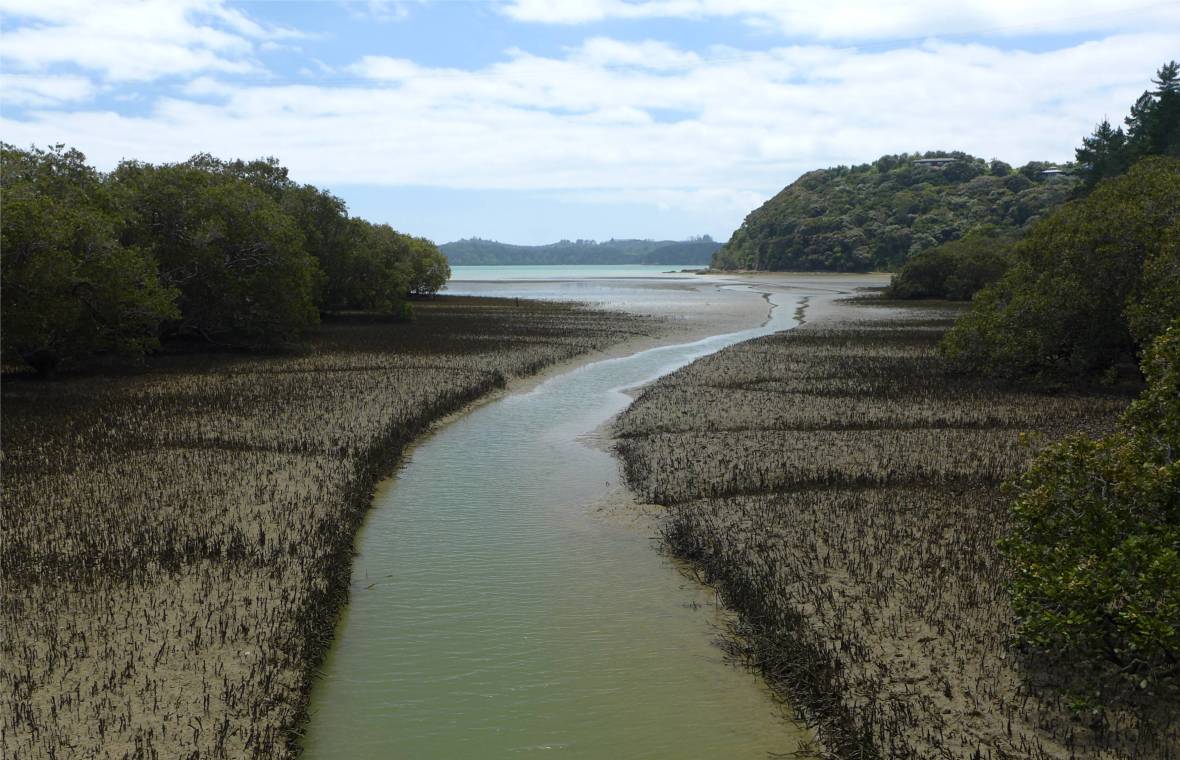 NZ Opua Coastal Walk Mangroven am Flussufer