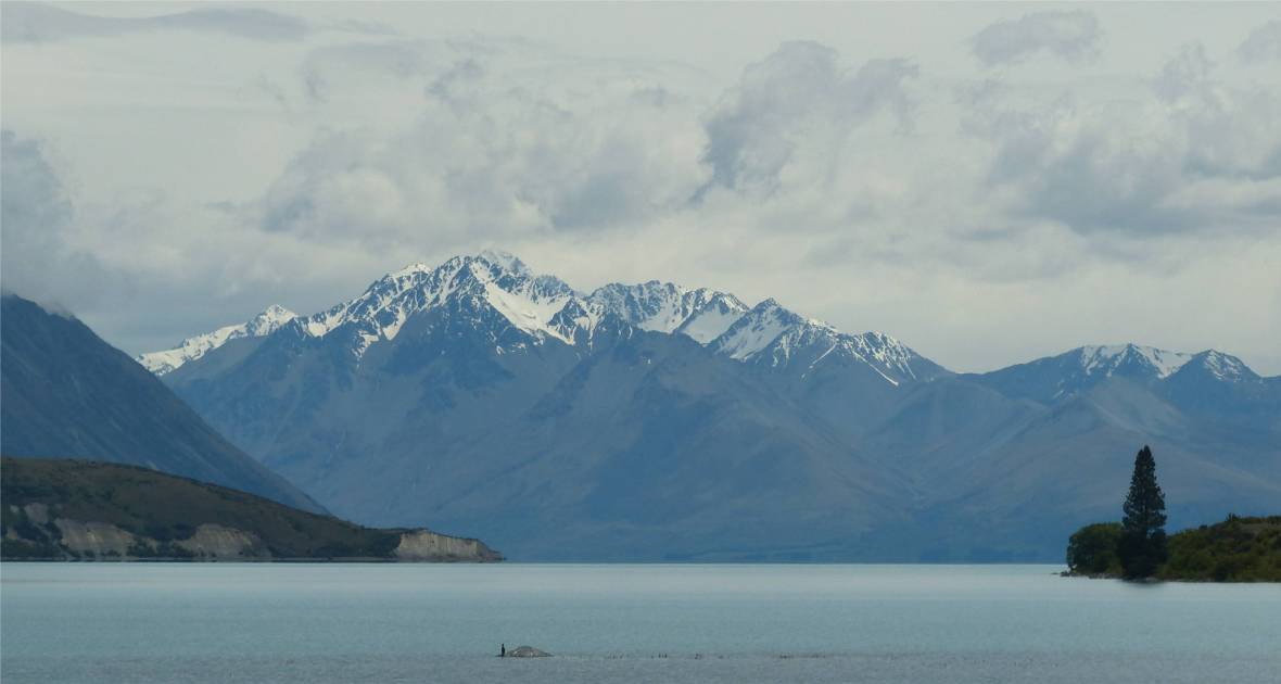 NZ Tekapo die Wolken geben den Blick auf die Berge frei
