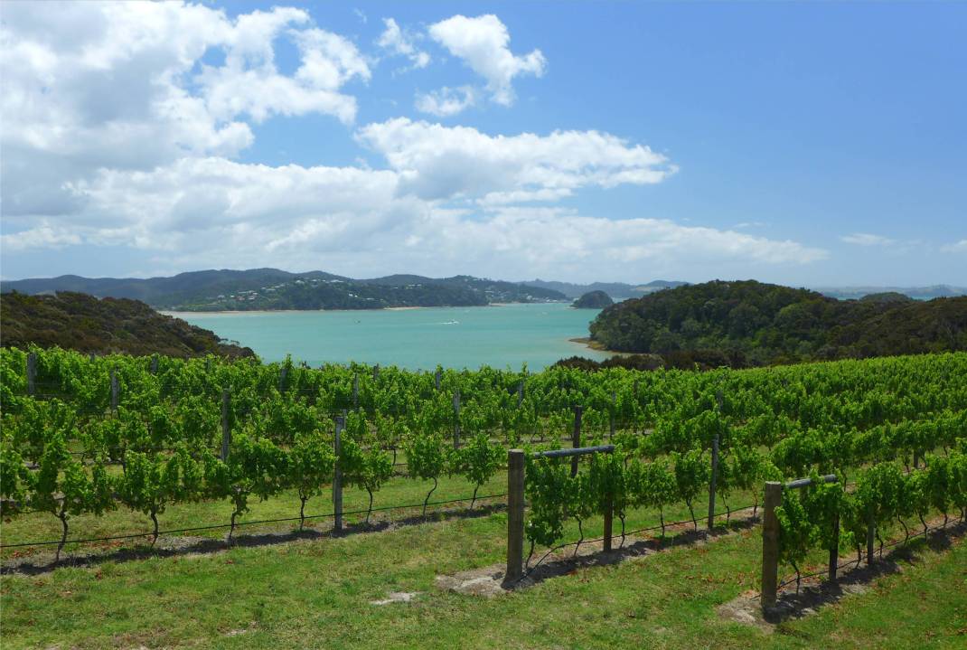 Nicht weit entfernt liegt ein Weingut, das mit warmer Küche und Weinprobe wirbt. Wir setzen mit der Fähre nach Okiato über und erreichen das kleine Weingut nach fünfzig schweißtreibenden Minuten. Mit Blick auf die Weinberge genießen viele Gäste die sommerlichen Temperaturen. Kinder aller Altersgruppen spielen auf der Wiese oder zwischen den Weinreben, Babys schlafen im Schatten und die Erwachsenen genießen den Wein. Natürlich probieren wir uns durch die Weine, laufen zwischen den Reben hindurch bis zum Aussichtspunkt und essen auf der schönen Terrasse. Nun träumen wir nicht mehr von Glühwein, wie vor zwei Wochen auf der Südinsel, sondern genießen den neuseeländischen Sommer.