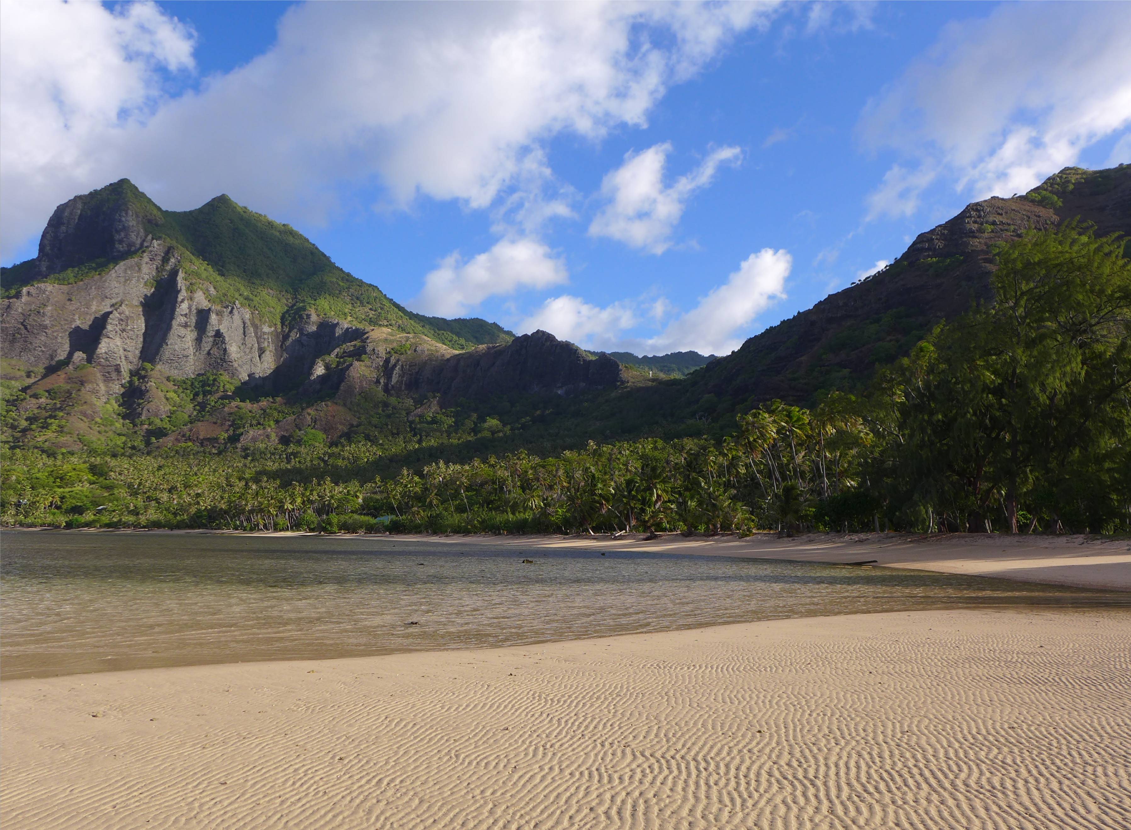FP Huku Hiva Anaho breiter Strand bei Niedrigwasser