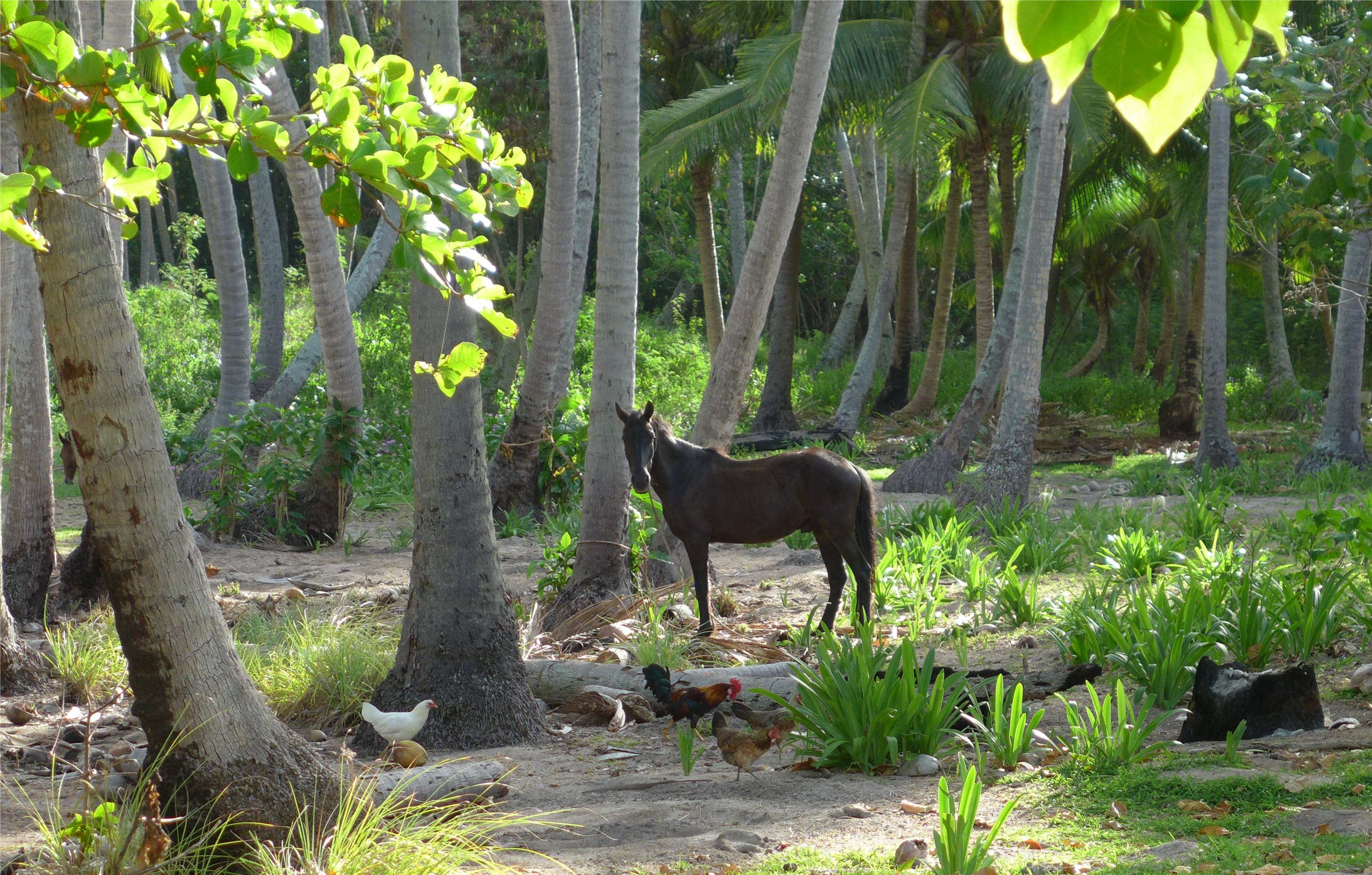 FP Nuku Hiva Pferd Huehner kokospalmen