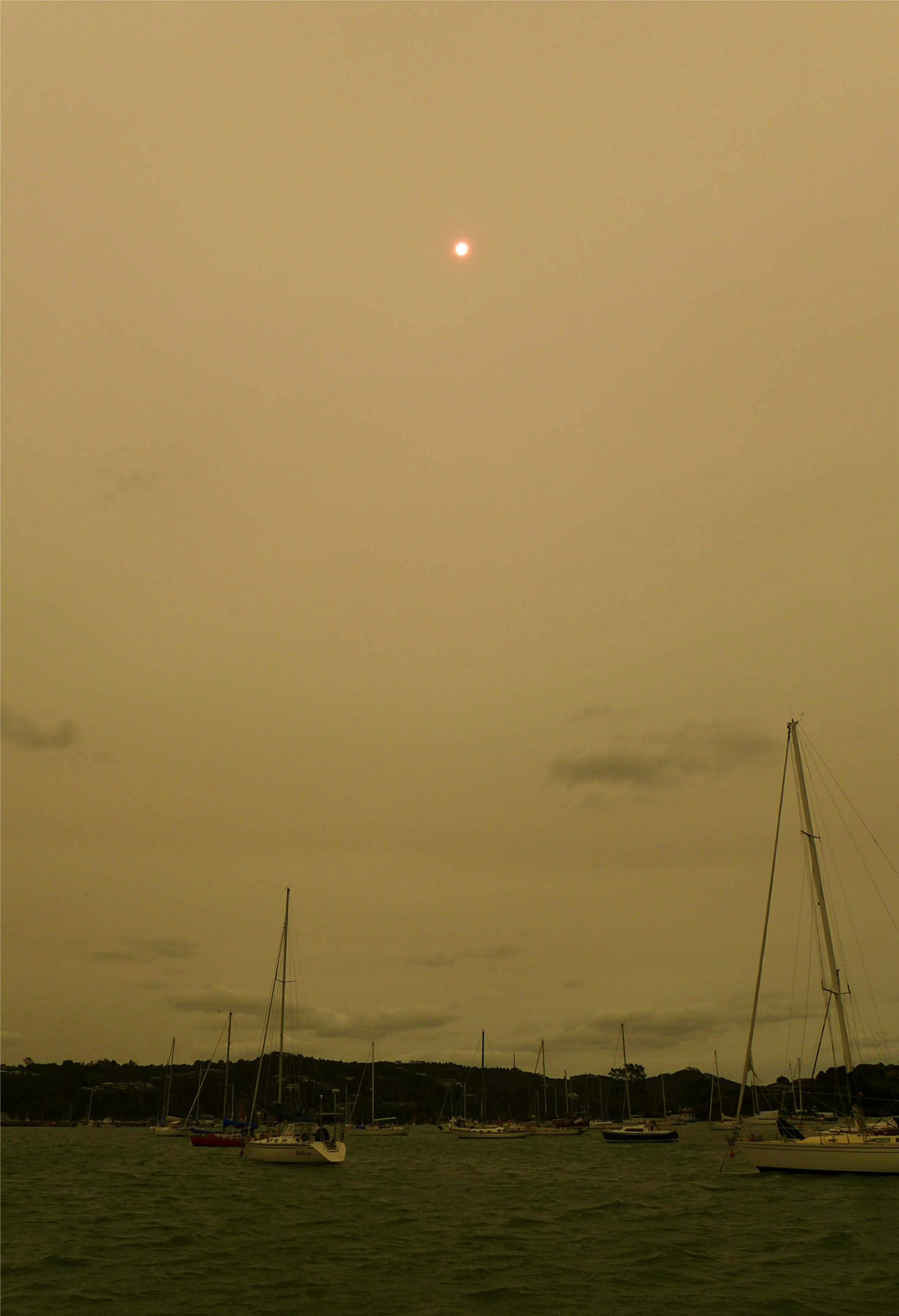 NZ Rauch von Australiens Feuern verdunkelt den Himmel in NZ