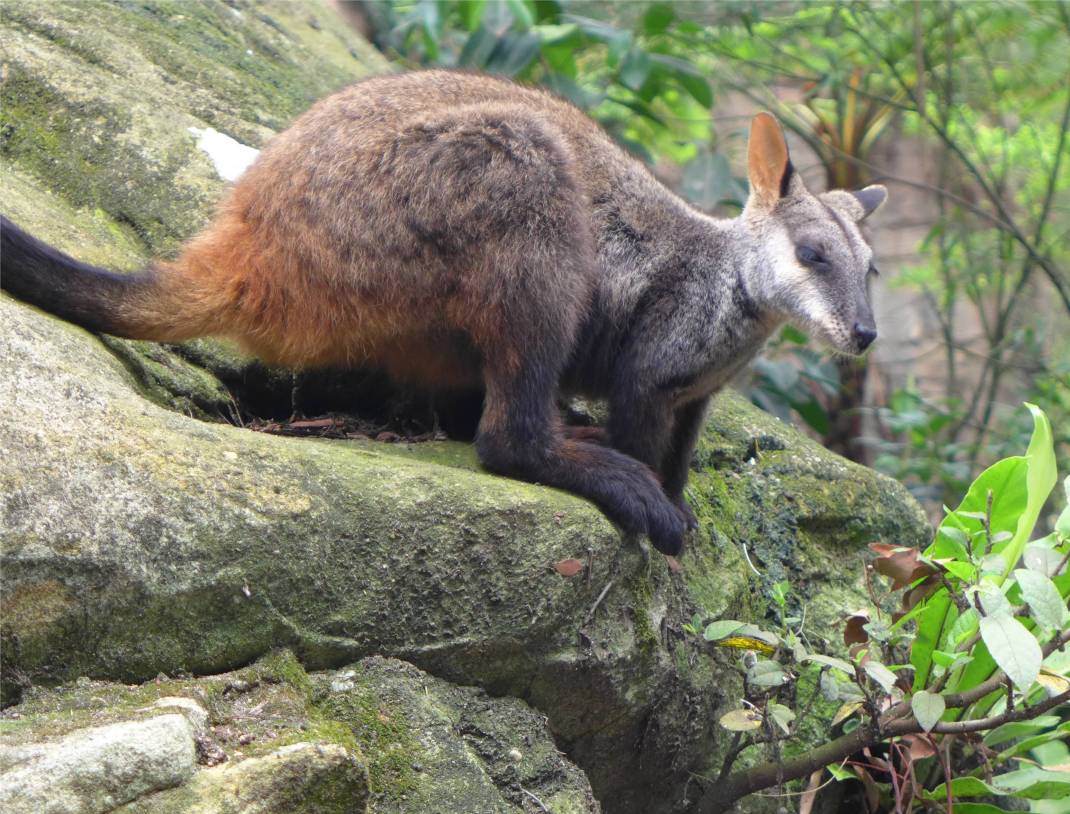 Am nächsten Tag geht es in den Zoo. Wir wollen unbedingt ein paar typisch australische Tiere sehen, bevor wir den Kontinent verlassen. Mit der Fähre geht es zum Zoogelände und mit der Seilbahn zum Haupteingang. Ich bin ja kein Freund von Seilbahnen, muss aber zugeben, dass es nicht schlimm war. Außerdem lenkt die tolle Aussicht auf die Stadt und die Tiere ab. Durch den am Hang gelegenen Zoo geht es in vielen Schleifen wieder hinab zur Fähre. Mir gefallen die Schnabeltiere am besten. Eins schwimmt und taucht und planscht. Wunderbar. Was für putzige Tiere. Der Zoo hat auch Ameisenigel (Echidna). Schnabeltiere (1 Art) und Ameisenigel (5 Arten) bilden zusammen die Ordnung der Kloakentiere und sind die einzigen Säuger die Eier legen. Während Schnabeltiere im Wasser leben und an Land schlafen, sind Ameisenigel Landtiere. Sie sind alle in der Dämmerung oder nachts aktiv, dementsprechend sind unsere Fotos geworden. Also nix. Ihr müsst sie euch also woanders angucken. Natürlich haben wir Wallabys, Kängurus, Wombats und Koalas angeguckt. Der Zoo ist durch seine Lage am Hang sehr schön und abwechslungsreich. Es gibt viele Volieren, durch die man nach dem passieren von Schleusentoren, hindurch laufen darf und nach den Tieren Ausschau halten kann. Im Zoo leben auch Tiger, nein, da darf man nicht durchs Gehege laufen, Elefanten und Giraffen, wir haben uns aber eher auf die australischen und südostasiatischen Tiere konzentriert. Viele der kleinen Säuger hatten wir noch nie gesehen. Wir haben den ganzen Tag im Zoo verbracht und die verschiedensten Tiere beobachtet.