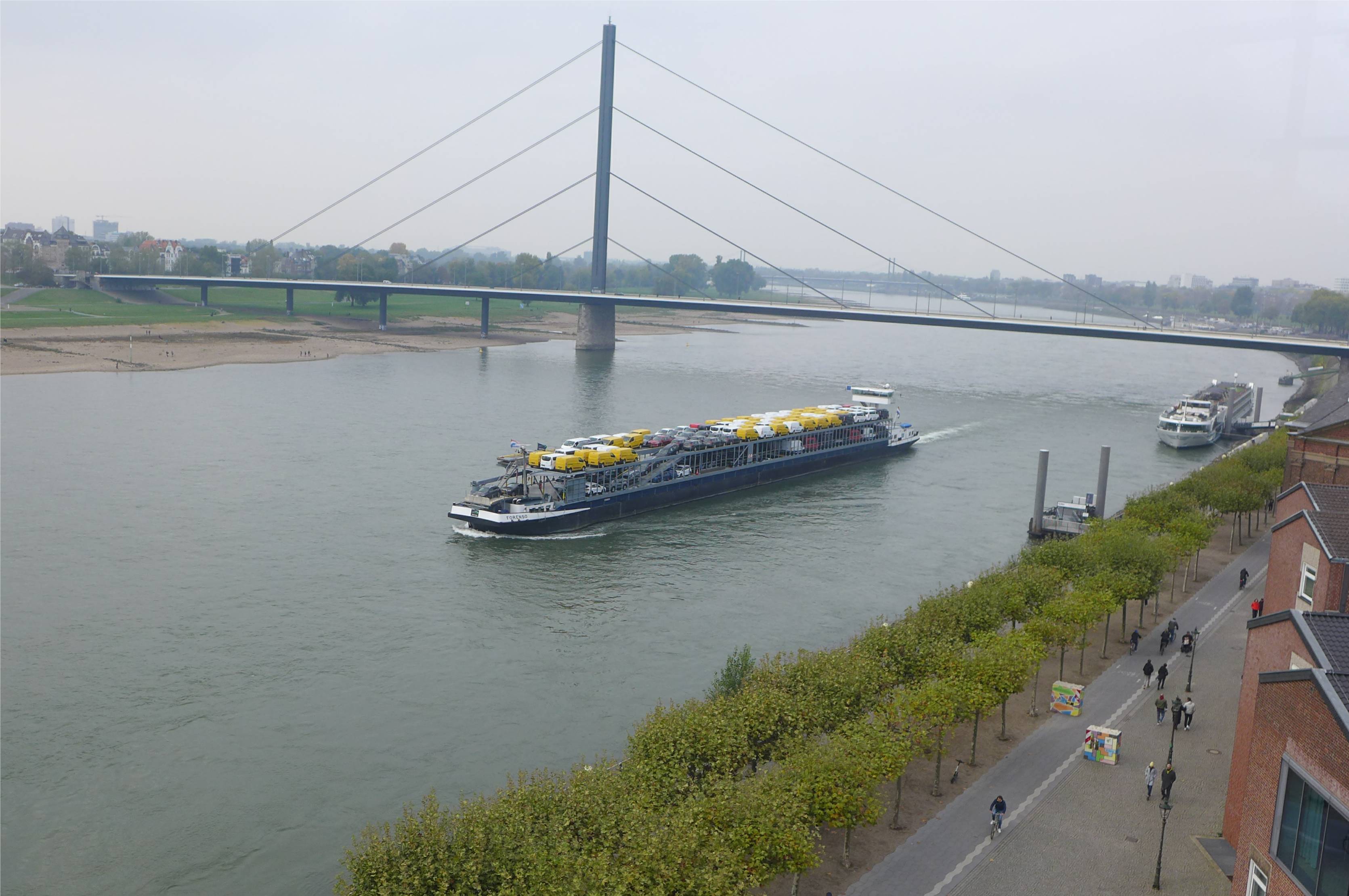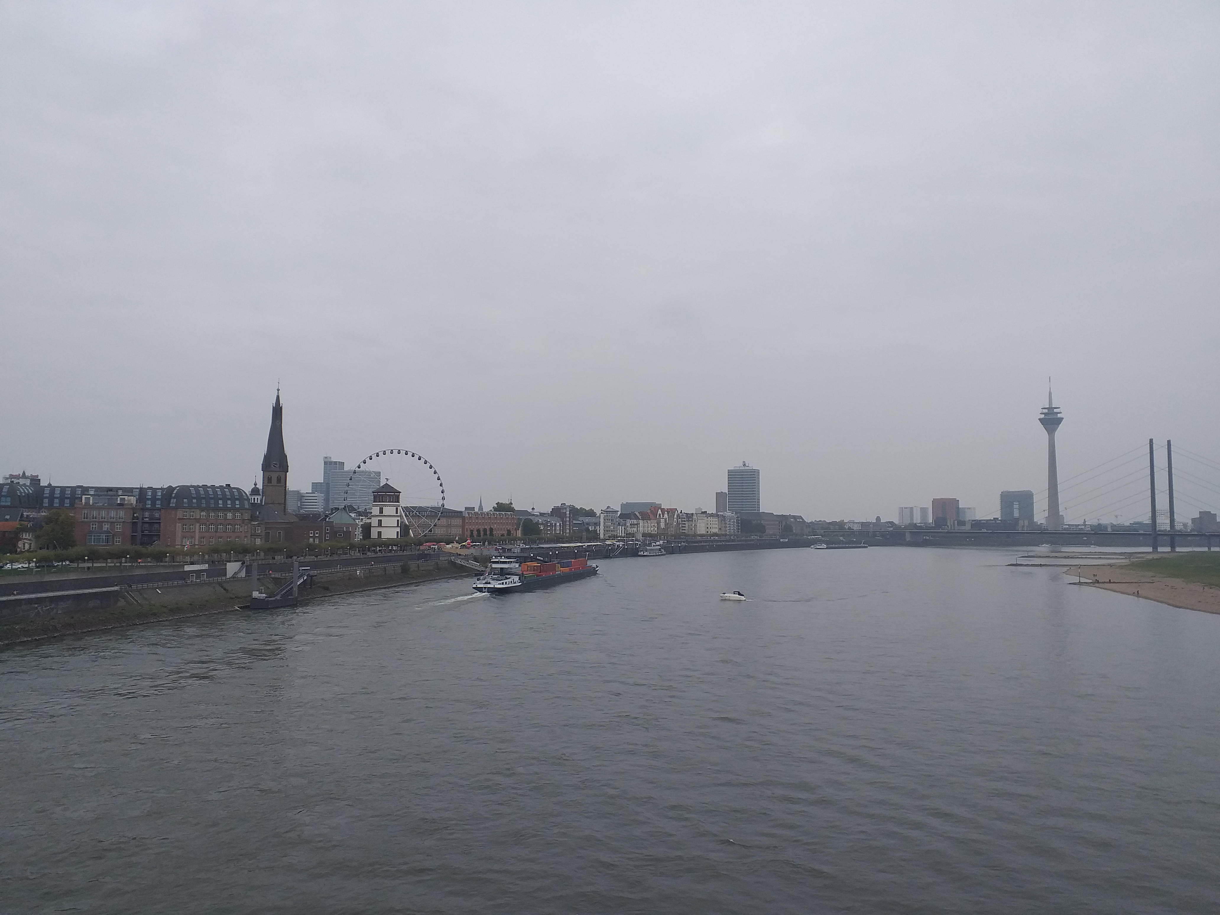 Nach einem interessanten gemeinsamen Wochenende machen wir abschließend noch einen schönen Spaziergang durch die mittelalterliche Altstadt von Hattingen und uns danach auf den kurzen Weg nach Düsseldorf. Dort spazieren wir am Rhein entlang und freuen uns, dass so viele Binnenschiffe unterwegs sind.