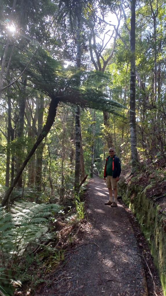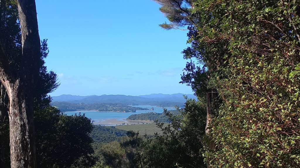 Letzten Dienstag waren wir mit dem Bus in Paihia zum Einkaufen. Der Bus fährt zweimal die Woche, späten Vormittag hin, dreieinhalb Stunden später zurück. In Paihia haben wir zunächst einen Abstecher zum Aussichtspunkt gemacht, der Weg führt durch einen schönen Wald und die Aussicht ist toll. Eine gute Stunde haben wir gebraucht und beschlossen, dass wir uns nach so viel Aktivität mit einer Pizza belohnen könnten. Neben einigen Lebensmitteln brauchten wir ganz dringend Benzin für den Außenborder. Es könnte schon sein, dass es offiziell nicht erlaubt ist mit einem 10l-Kanister unterm Arm in den Bus zu steigen. Nobbi hatte den Kanister in einer hübschen Einkaufstasche über die Schulter gehängt und ist damit in den ganz locker in den Bus gehüpft, so kamen keine Fragen auf.