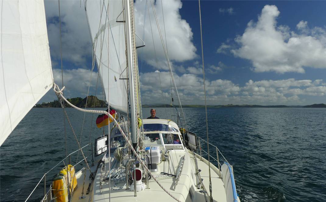 Der Ausflug unter Segeln war dringend nötig. Die Stimmung an Bord konnte nach Sturm, Regen, Ärger, Enttäuschungen und wieder Regen gut eine Aufhellung gebrauchen. Außerdem haben wir das Boot mal ein wenig geschüttelt, alle Systeme haben funktioniert und wir konnten feststellen, dass wir noch segeln können und dass es nirgends so schön ist wie am Anker.