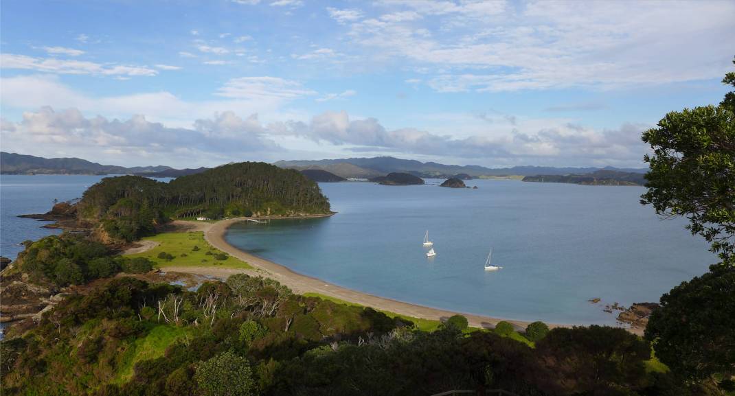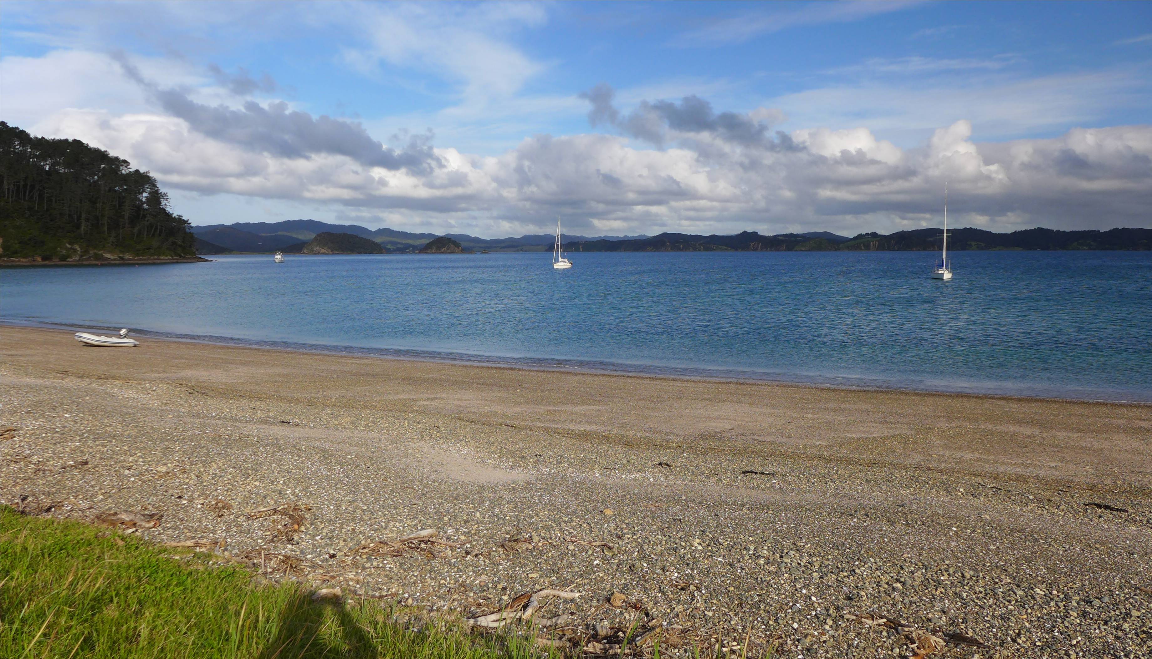 Anfang der Woche versprach der Wetterbericht ruhiges Wetter. Uns zieht es wieder raus in die Bucht, wir wollen unseren Wassermacher wieder in Betrieb nehmen und freuen uns auf eine Auszeit am Anker. Unter der Woche sind nur wenige Boote unterwegs, auch wenn die Touristensaison ganz langsam anläuft. Ein Tourboot überholt uns und ein Boot zieht zwei Leute an einem Fallschirm in großen Kreisen durch die Bucht vor Paihia.