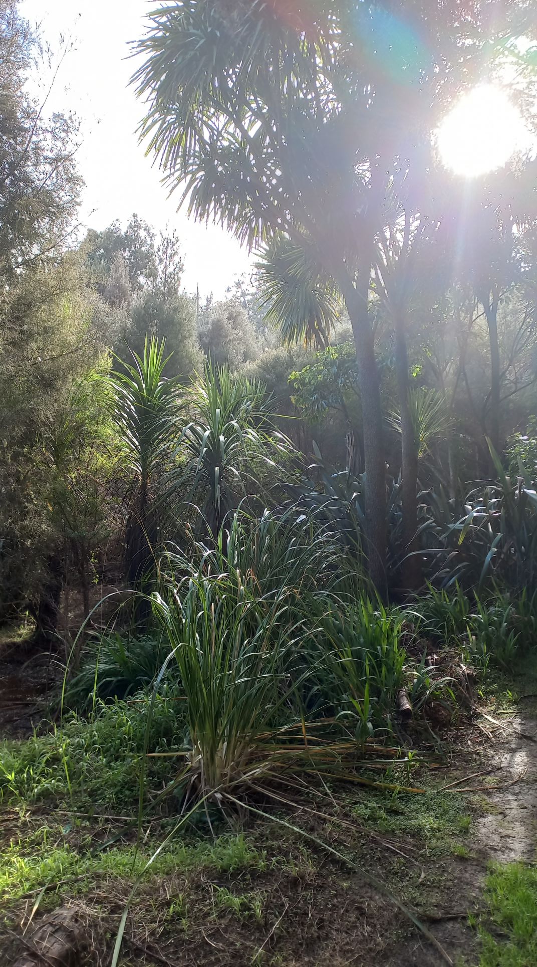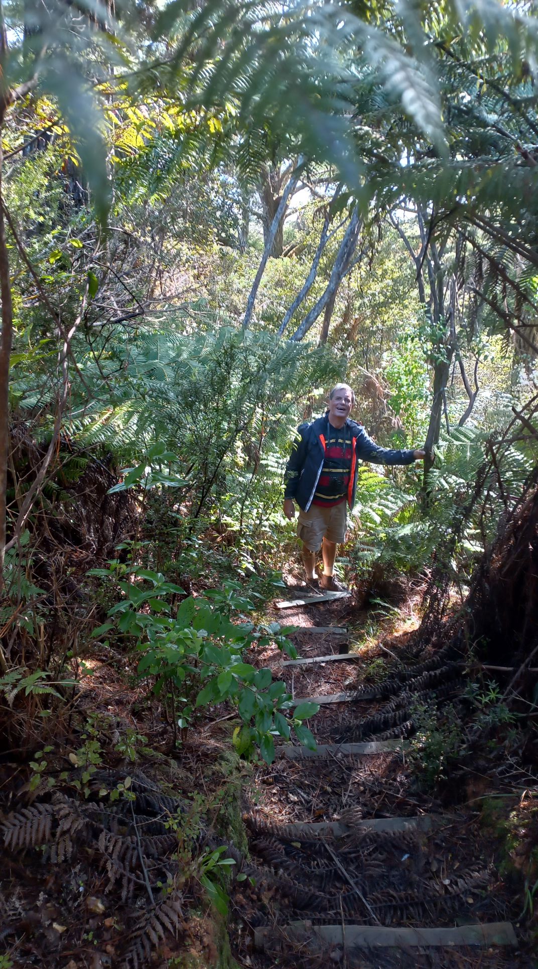 Die Stimmung ist wunderschön. Erste Sonnenstrahlen bahnen sich ihren Weg durch den Nebel, der über dem ursprünglichen Wald liegt. Ich mag diese Vegetation, die uns so vertraut vorkommt. Viele Pflanzen kennen wir aus den heimischen Wäldern und dazwischen die uns fremden Bäume und die viele Baumfarne, bei denen ich immer an Dinosaurier denke.