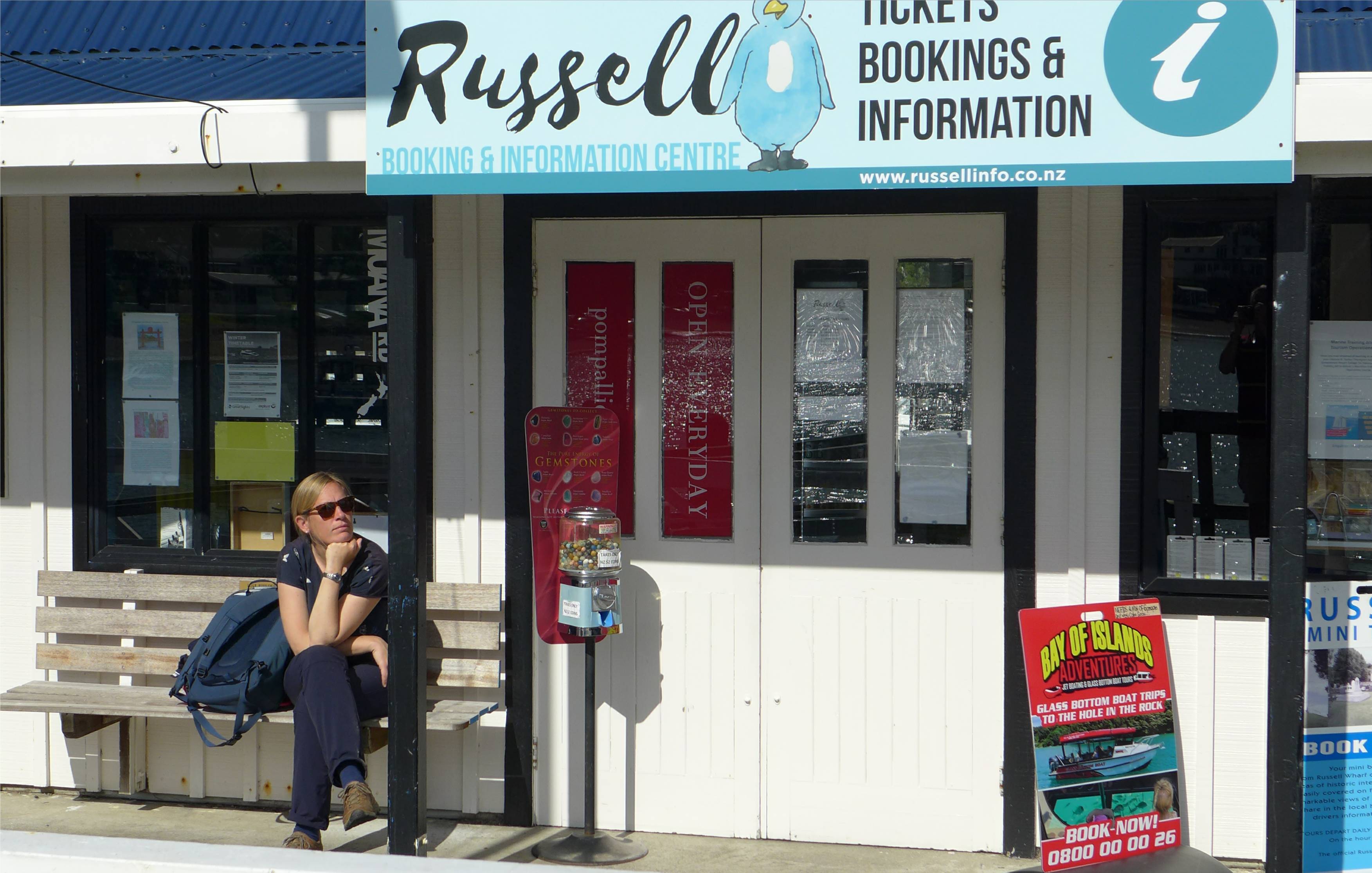 Eigentlich wollten wir noch etwas Zeit in Russell verbringen, der kleine Ort ist sehr sympathisch und hat einige kleine nette Läden, doch die Zeit bis die Fähre fährt wird etwas knapp. Das macht nichts, in Russel sind heute ohnehin fast alle Läden geschlossen, sogar der Supermarkt – Stromausfall!