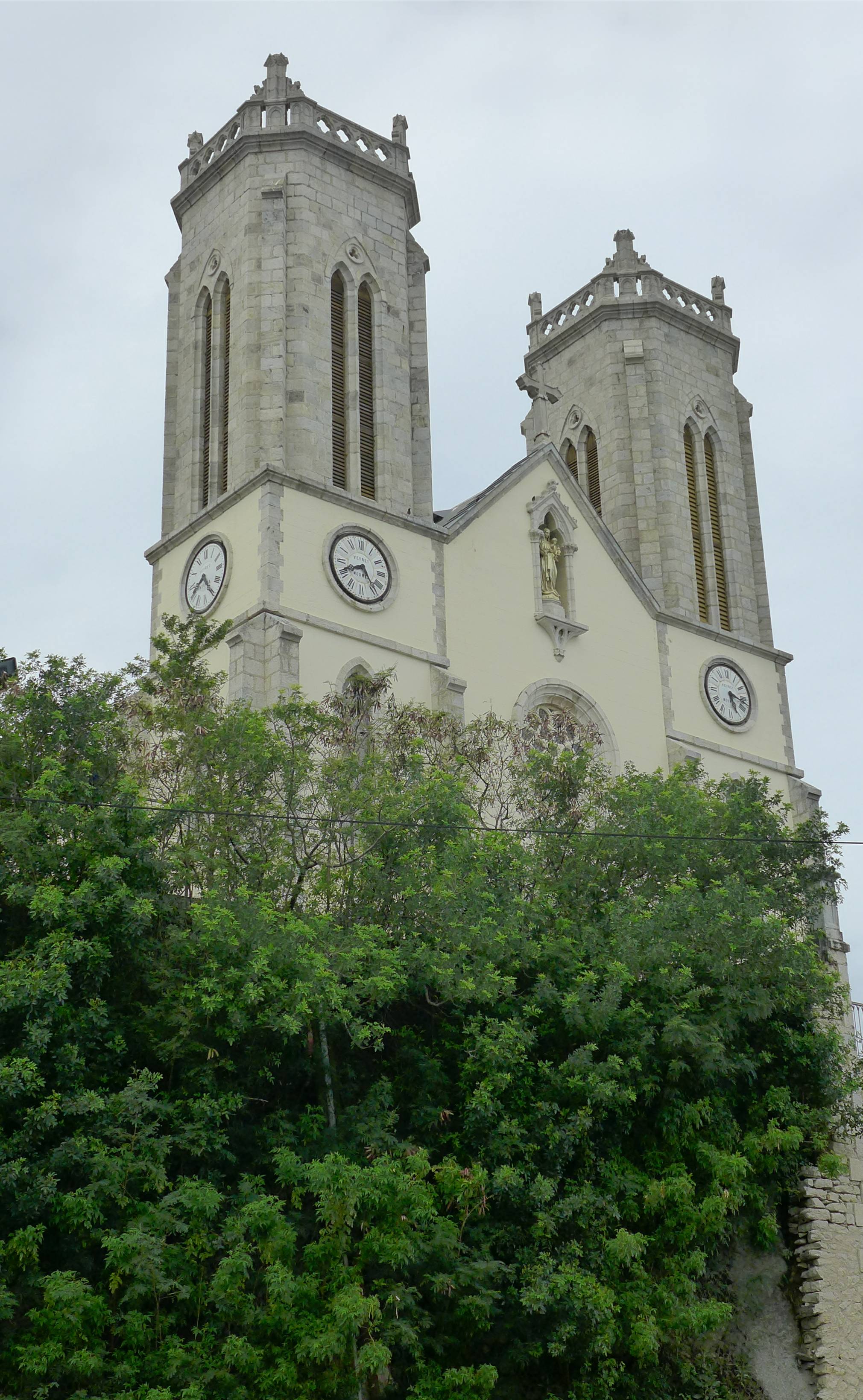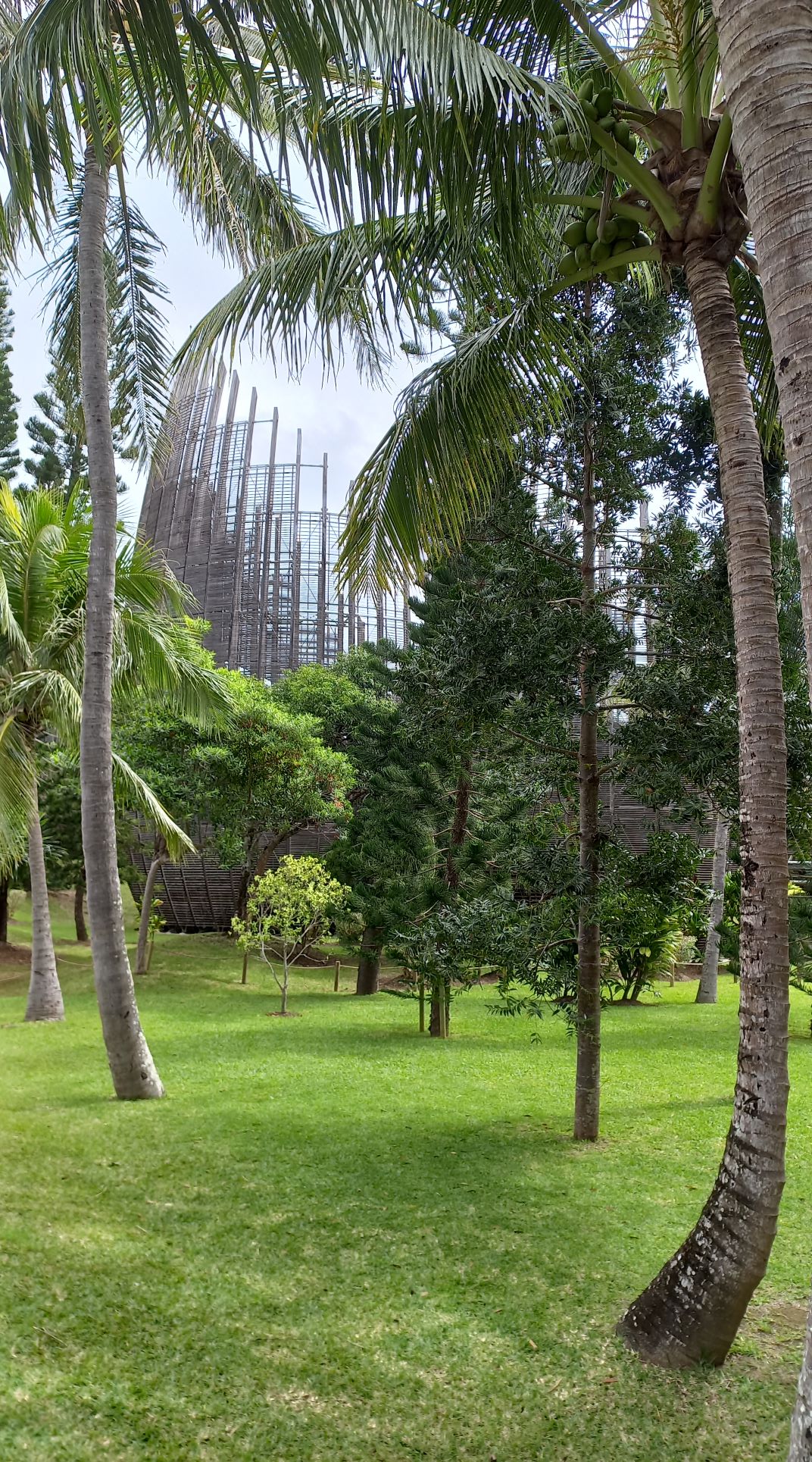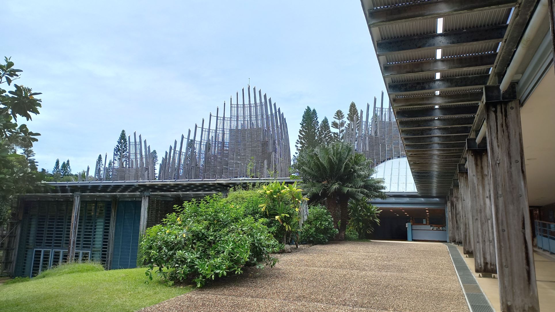 Wir finden eine geschlossene Kathedrale, ein Stück der Berliner Mauer, eine Bibliothek, die als Pavillon auf der Weltausstellung 1900 diente, und ein Museum im Rohbau. Das Museum Neukaledoniens wird leider gerade neugebaut. Die Pläne für das neue Museum sehen toll aus, sehr modern. Doch wir können jetzt eben nur die Baustelle besichtigen. Der zentrale Platz ist schön begrünt und lädt zu einer Pause ein. Die Bebauung ist eine wilde Mischung. Regierungsgebäude, Rathaus und Supermärkte, viele kleine Läden und sehr viele geschlossene Läden. Geschlossene metallene Rolltore. Überall sehen wir „A Louer“ – zu vermieten. Ob das schon lange so ist? Oder erst durch die Pandemie? Zwischen der Zweckbebauung aus Beton finden sich echte Perlen. Ältere, schöne Gebäude mit Fensterläden und neue Bauten mit gewagten Dachkonstruktionen.