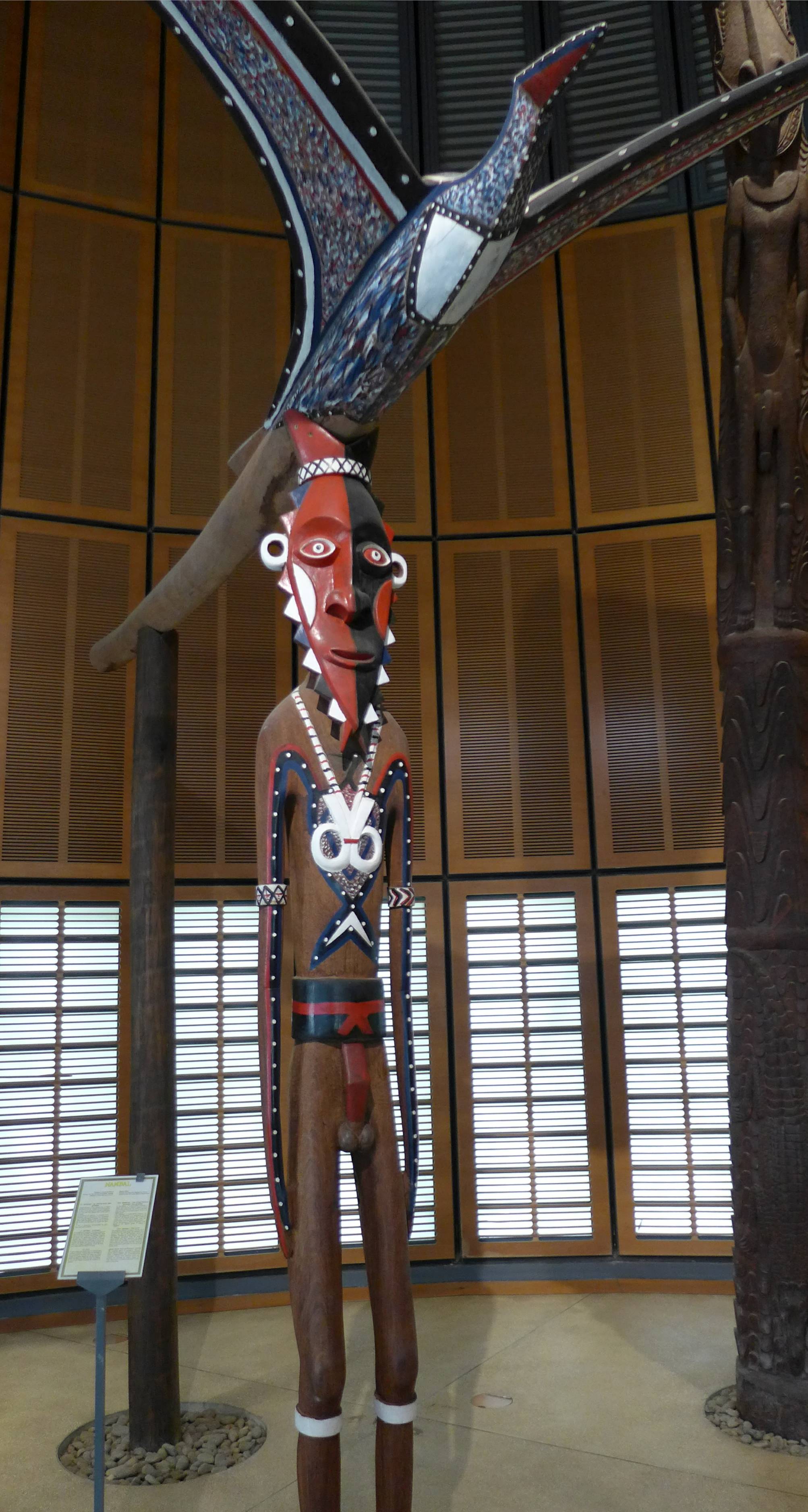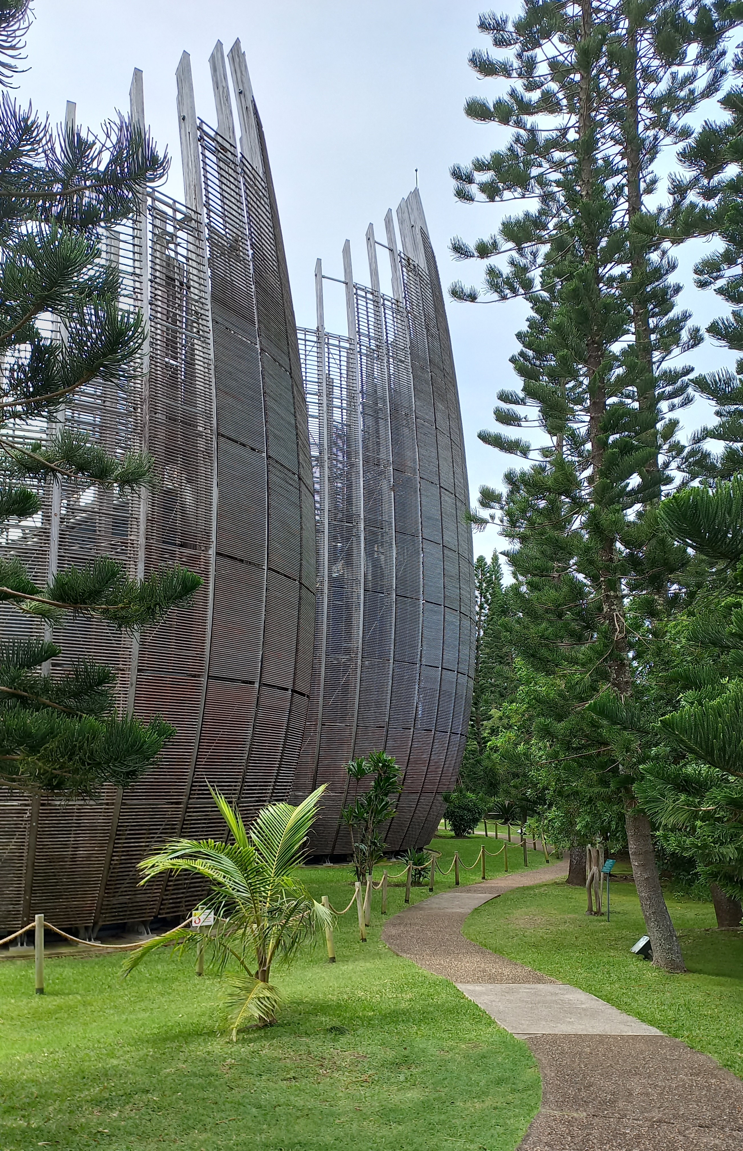 Jean Marie Tjibaou war Politiker und Anführer der kanakischen Unabhängigkeitsbewegung. Kanaken heißen die melanesischen Urbewohner Neukaledoniens. Die Kanaken sind mit 45 % die größte Bevölkerungsgruppe. Das Kulturzentrum zeigt kanakische Kunst. Es gibt Dauerausstellungen mit Schnitzereien, eine Sammlung zeitgenössischer Kunst und wechselnde Ausstellungen, außerdem Konferenzräume, eine Bibliothek und ein Archiv. Das Kulturzentrum wurde von italienischen Architekten Renzo Piano entworfen und ist architektonisch sehr sehenswert. Auf dem Gelände kann man außerdem Hütten aus verschiedenen Teilen des Landes ansehen und es gibt den Kanaken Pfad, einen Weg, der die Verbindung der Menschen zu ihrem Land und die Verwendung der Pflanzen erklärt. Dass Geister wichtig sind, auch wenn wir ihre Bedeutung nicht verstehen, aber vielleicht wenigstens eine Ahnung ihrer Wichtigkeit bekommen, beginnen wir schon an der Kasse zu verstehen. Der Kassierer nimmt sich zeit und erklärt uns ausführlich, was wir auf dem Gelände alles sehen können und in welcher Reihenfolge wir die Ausstellungen besuchen sollen. Das Museum steht im südlichen Distrikt, also sollen wir die Hütte des Südens zuerst besuchen, eine Frage des Respekts. Hinterher können wir dann ruhig die Hütten der anderen Landesteile ansehen. Abschließend bekommen wir noch Tipps welche Statuen wir anfassen sollen, das bringt Glück. Natürlich halten wir uns an seine Empfehlungen, wir wollen keine Geister verärgern und Glück können wir doch immer gebrauchen.