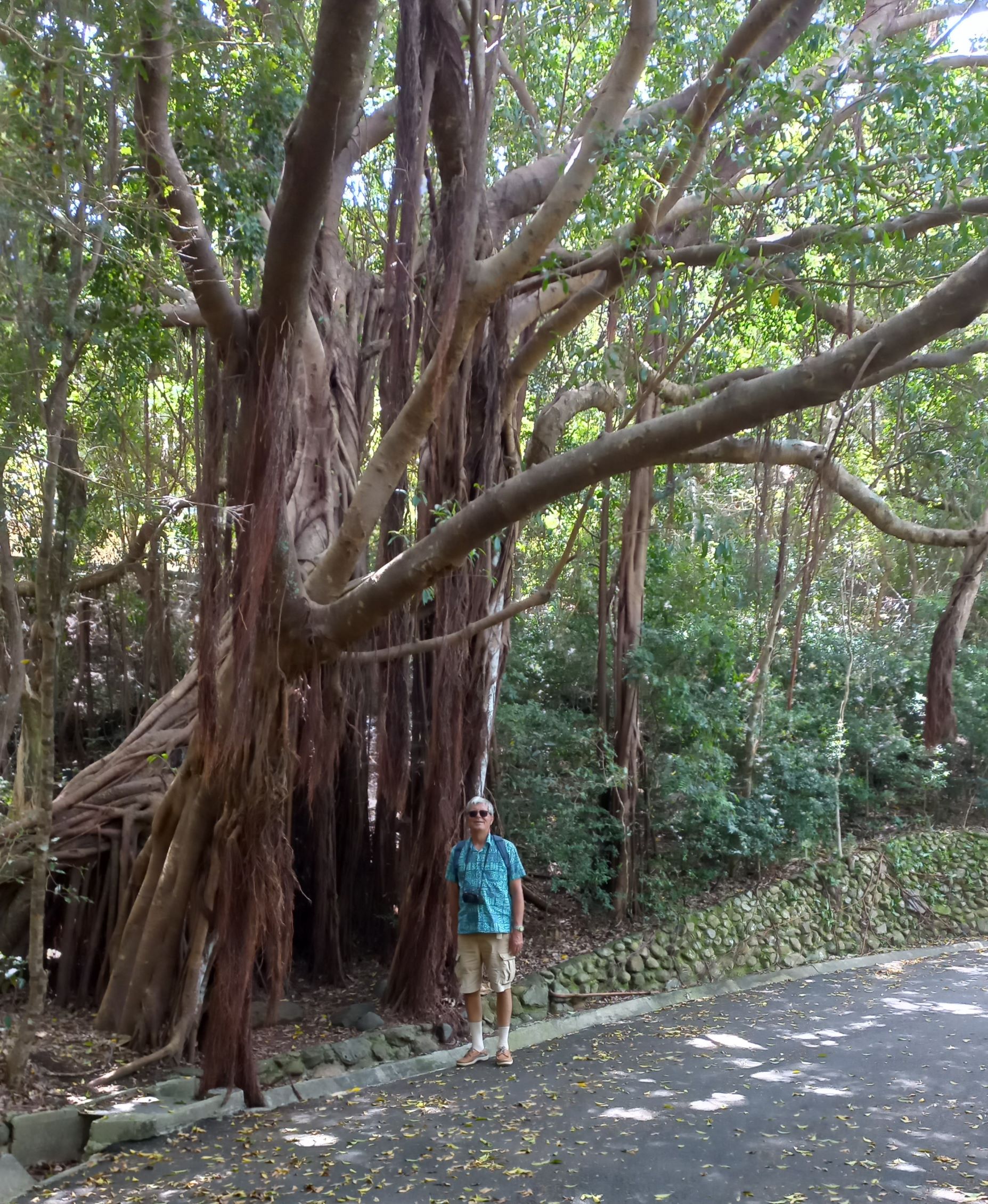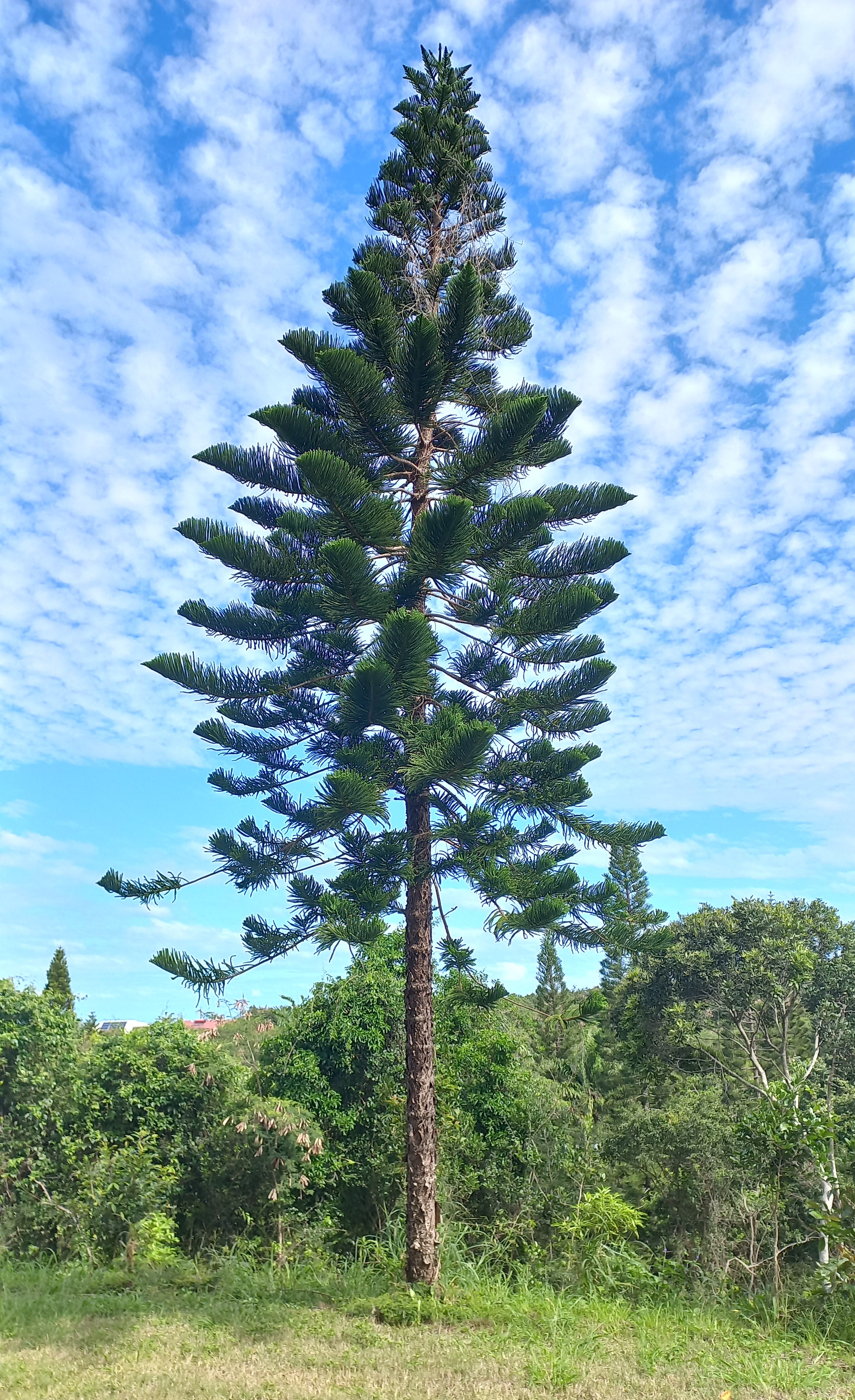 Wir lernen den Kagu kennen, den Nationalvogel, einen blau-grauen, flugunfähigen Vogel, der etwa so groß ist wie ein Huhn und lustige Geräusche macht. Klar, auch er kommt nur in Neukaledonien vor. Genau wie die Cook Kiefer, die keine Kiefer ist sondern eine Araukaria nämlich Araucaria columnaris und es aufs Wappen geschafft hat. Von den 19 Aukarienarten gibt es 13 nur in Neukaledonien, einige von ihnen nur in ganz begrenzten Gebieten. Insgesamt werden etwa 3.000 Arten zur einheimischen Flora gezählt, das ist viel im Hinblick auf die geringe Landmasse. Neukaledonien ist also ein richtiges Botaniker-Paradies. Die Böden hier sind kompliziert, zum Teil sehr trocken, ultrabasisch und reich an Schwermetallen, dies dürfte zum hohen Maß der Endemie beigetragen haben, genauso wie die relative Abgeschiedenheit.