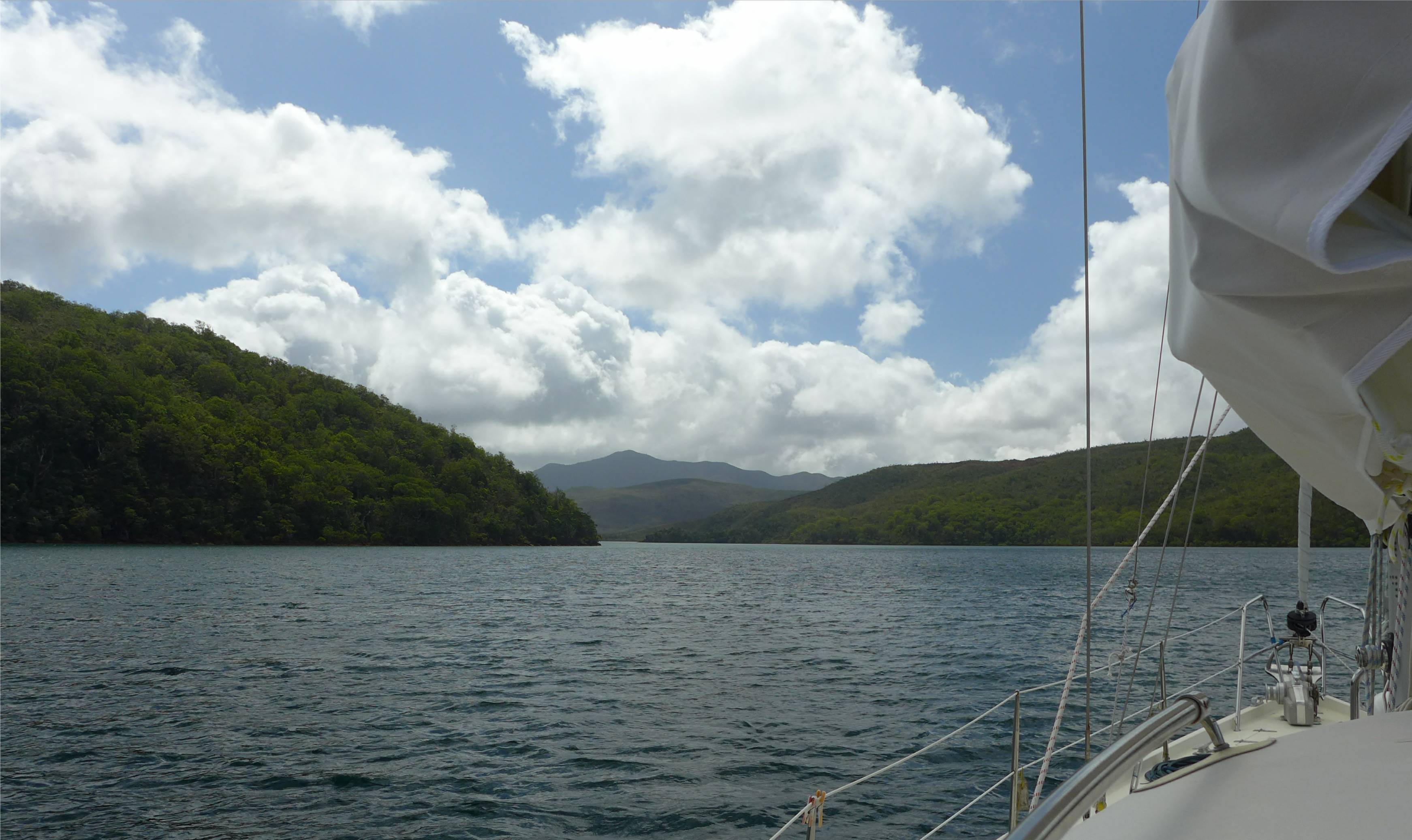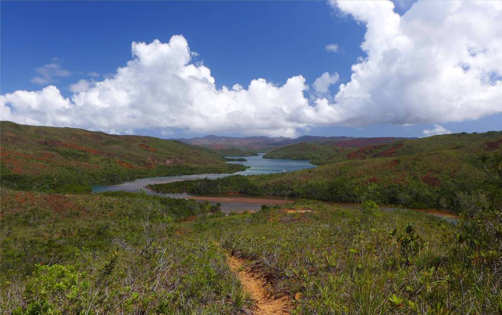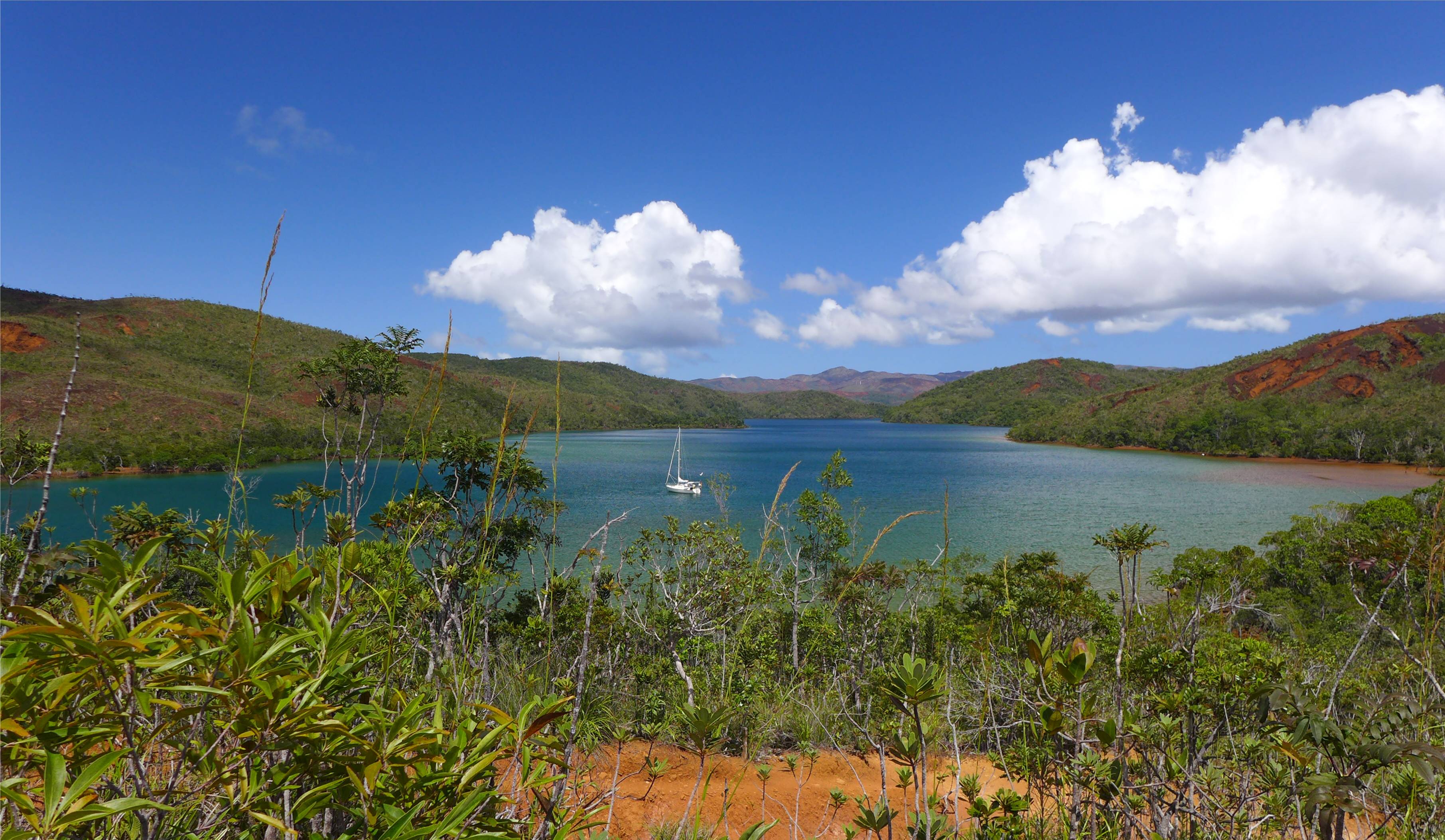 Im Norden der Baie de Prony münden mehrere Flüsse in die große Bucht, außerdem unzählige kleine Bäche. Wir lassen unseren Anker zunächst in der Baie de Kaori, der östlichen Bucht fallen. Unser Ankerplatz ist von grünen Hügeln umgeben. An anderen Stellen haben die grünen Hänge rote Wunden. Bodenerosion ist hier ein großes Problem. Beim intensiven Abbau von Nickel und anderen Rohstoffen wurden ganze Bergkuppen abgetragen, hinzukommt die Abholzung der ursprünglichen Wälder. Zurück bleiben rote Hänge.