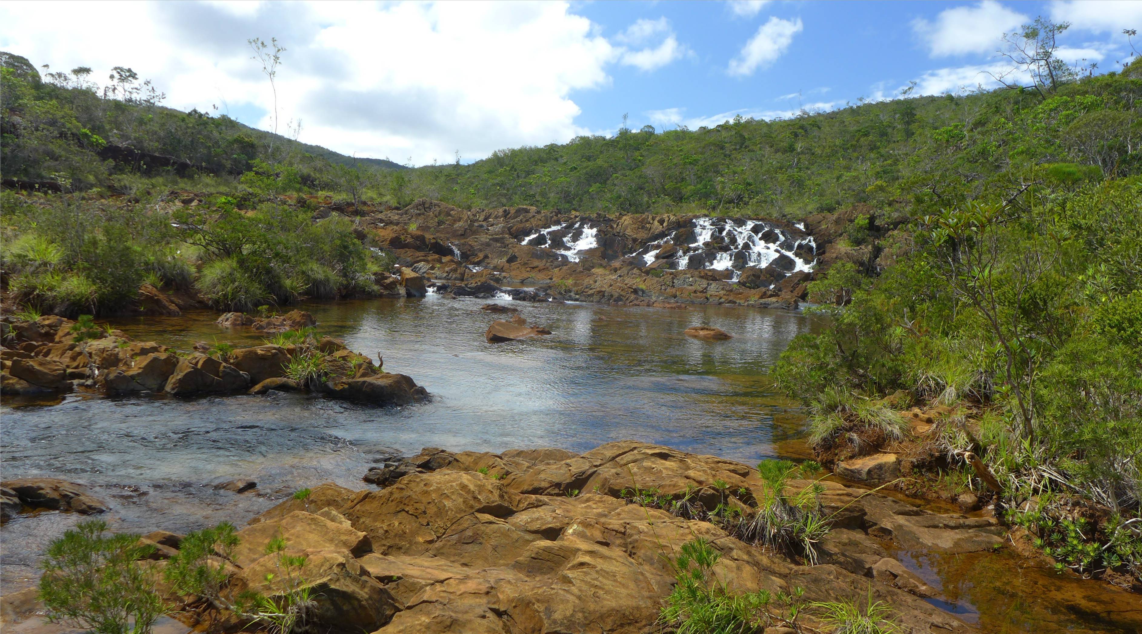 Auf dem Rückweg machen mit Donkey einen Abstecher in die Mangroven und klettern in einem weiteren Wasserfall herum. Zwischen den Wurzeln der Mangroven ist das Wasser ganz klar und wir sehen viele kleine Fische.