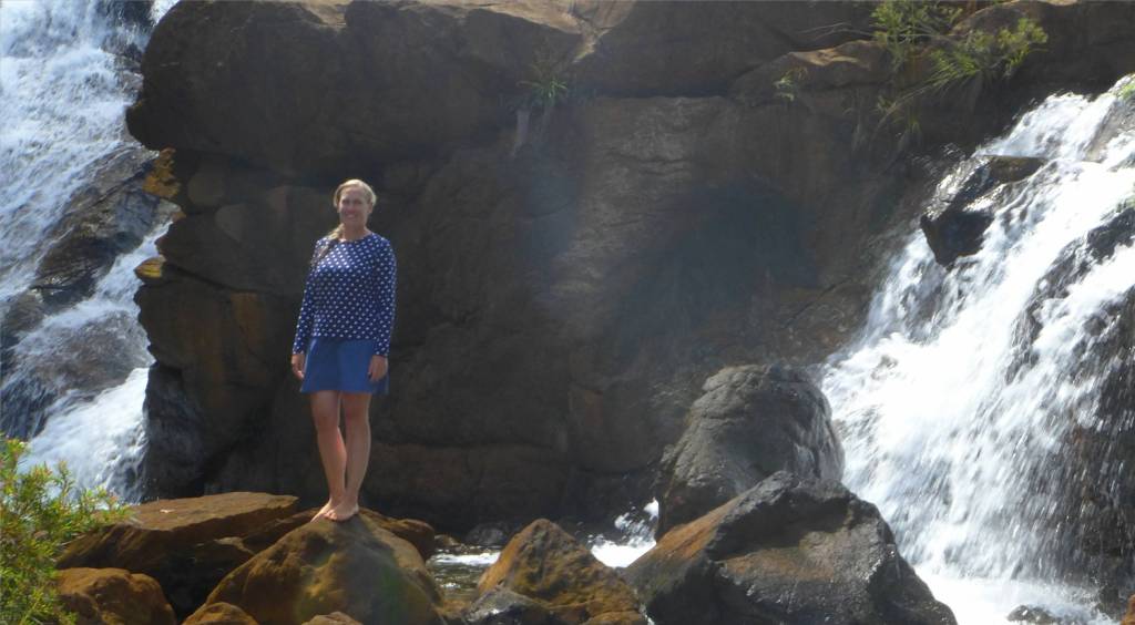 Vom neuen Ankerplatz wandern wir den Rivière de Carénage entlang. Und wieder führt unsere Weg zu einem Wasserfall. Der Anfang des Weges ist ziemlich schlammig, dann folgt ein schöner Wanderweg. Der Abstieg zum Wasserfall ist sportlich und bei Regen sicherlich nicht zu empfehlen. Doch es lohnt sich. Wir baden in einem Becken unterhalb der Twinfalls, des doppelten Wasserfalls, lassen uns auf den Steinen trocken und essen hier unseren Kuchen bevor wir uns auf den Rückweg machen.