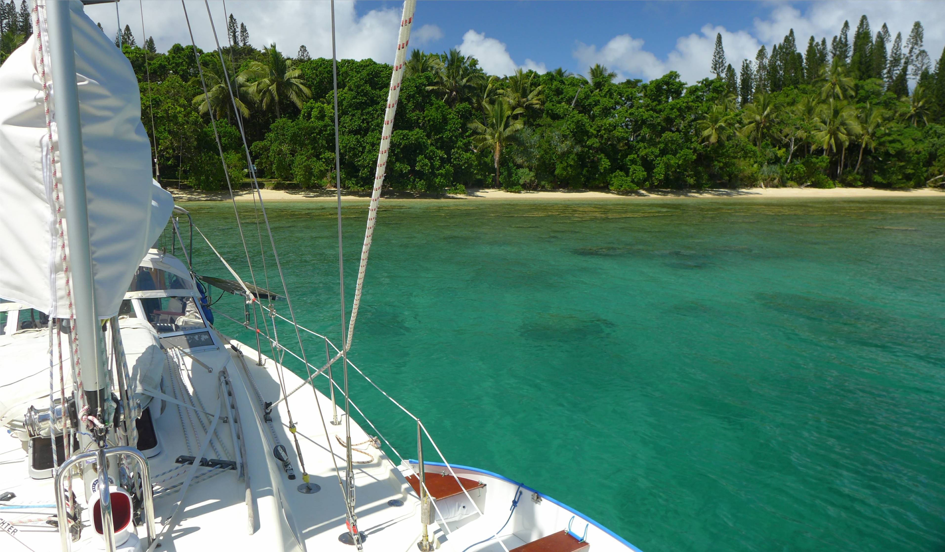 Nachmittags gehen wir Ankerauf und fahren zur Nordseite der Insel Ouen. Hier verbringen wir eine weitere wunderbar ruhige Nacht und segeln am nächsten Tag nach Uere. Auf Uere vertreten wir uns die Füße bevor wir Donkey zusammenklappen und an die Reling binden.