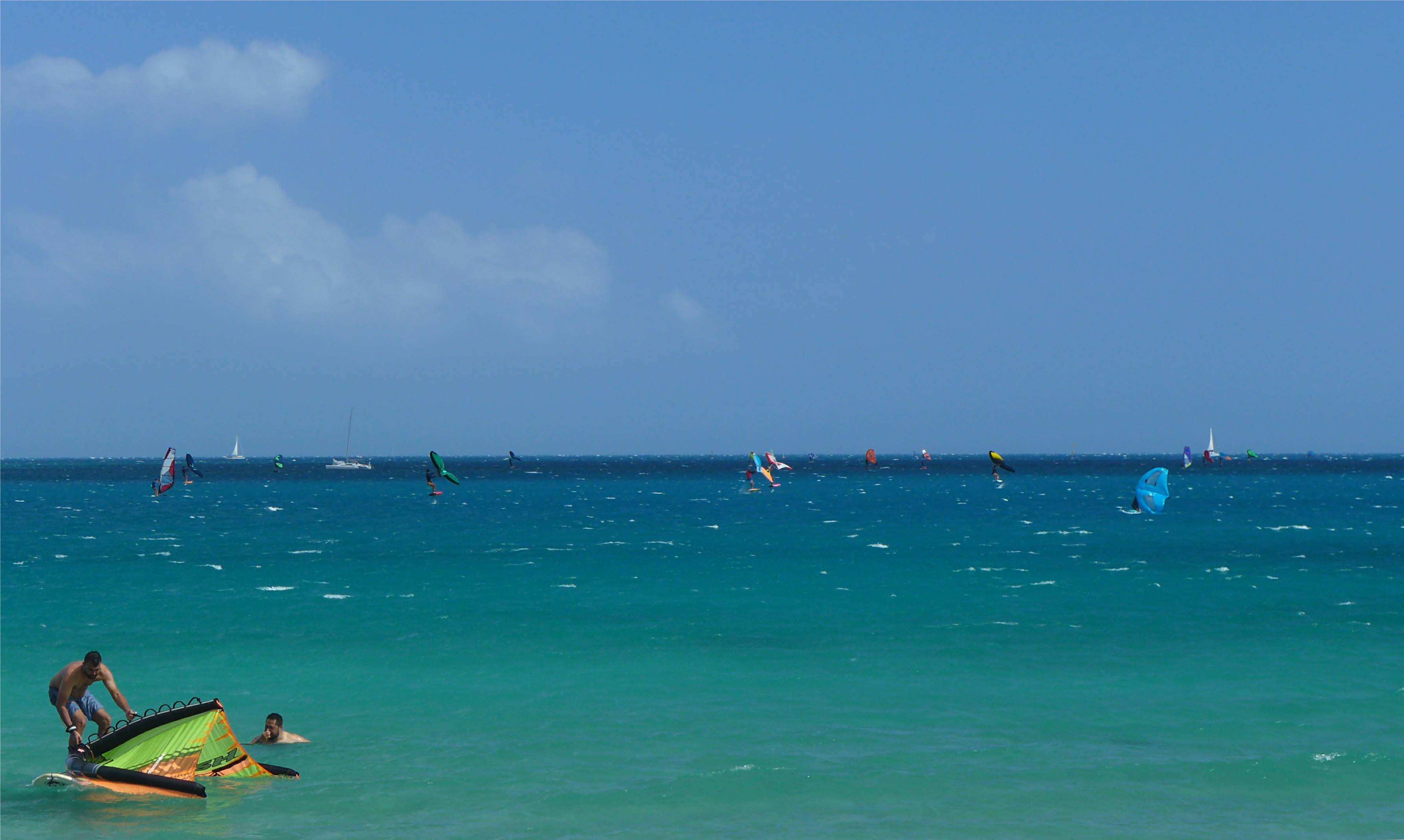 In Nouméa gibt es ein Aquarium, da es in einem Teil der Stadt liegt, den wir bisher noch nicht kennen, nutzen wir die Gelegenheit. Wir nehmen mal wieder den Bus und sehen uns zunächst das Aquarium an. Die Lebensbereiche Mangroven, Seegras, Riff und Tiefsee werden vorgestellt. Das Haus ist stolz auf seine fluoreszierenden Korallen und die Nautilusse, mir gefällt der Oktopus am besten. Hinterher beobachten wir am Plage Anse Vata die Wassersportler. Surfer und Wingfoiler haben bei frischem Wind sichtbar ihren Spaß.