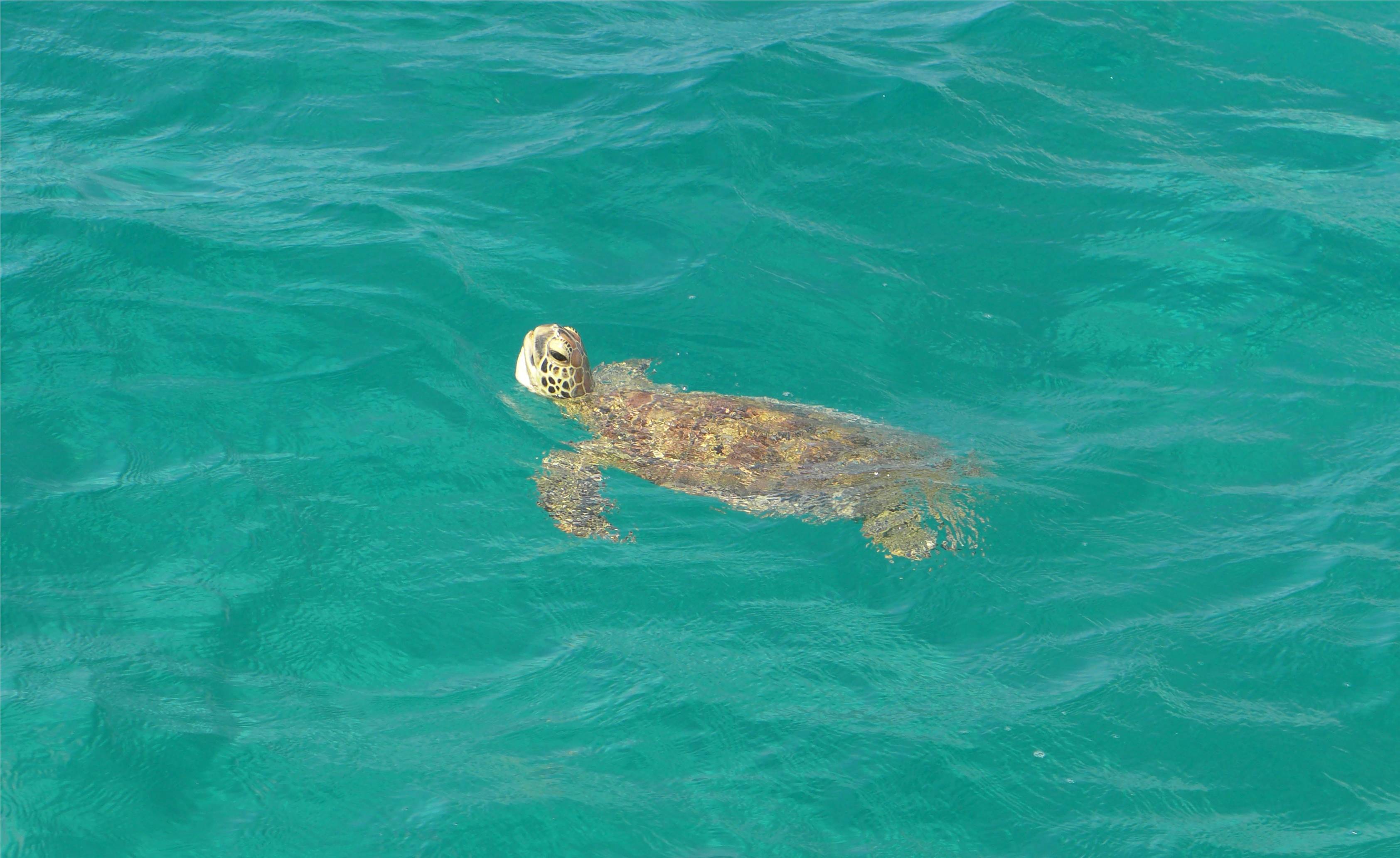 Hier gibt es unglaublich viele Schildkröten. An dem schönen Platz an der Ile Laregnere hatten wir oft drei Schildkröten direkt neben dem Boot. Sie sind sehr aufgeschlossen und wir durften mit ihnen Schnorcheln. Sie haben sich durch unsere Anwesenheit nicht beim Fressen stören lassen.