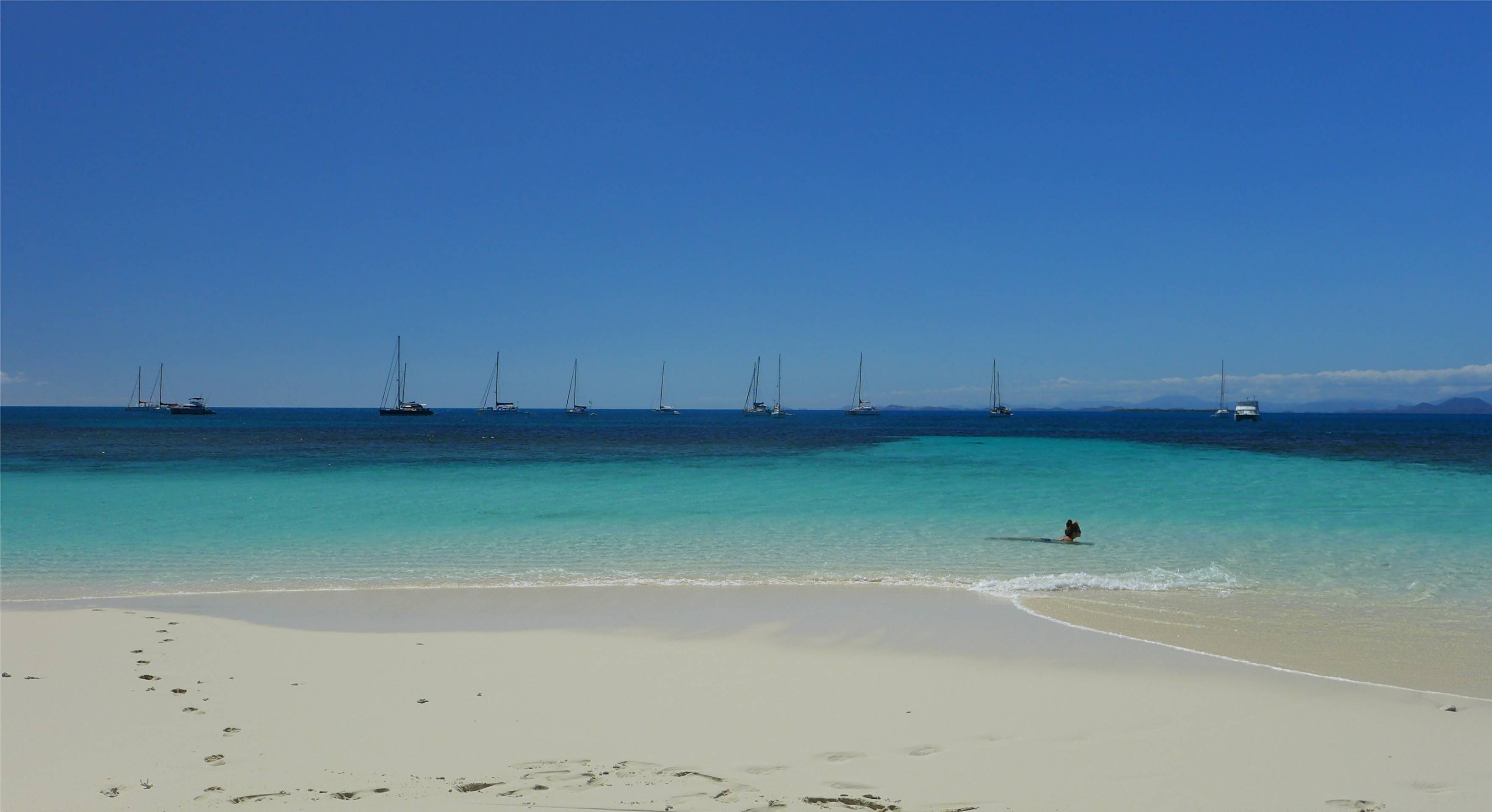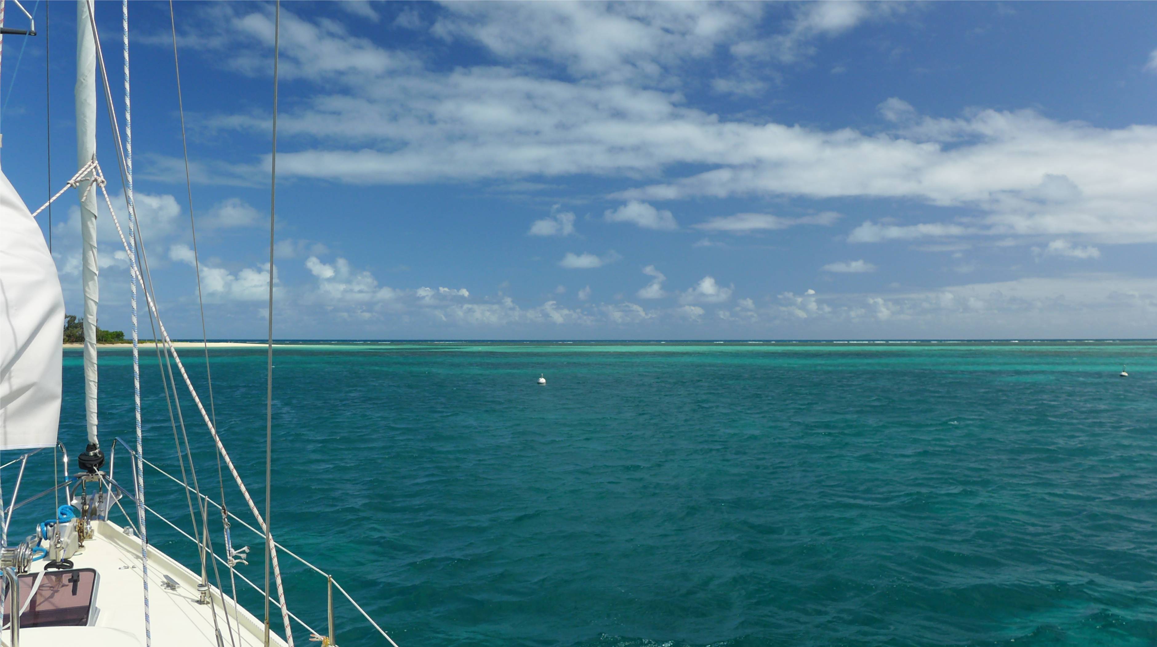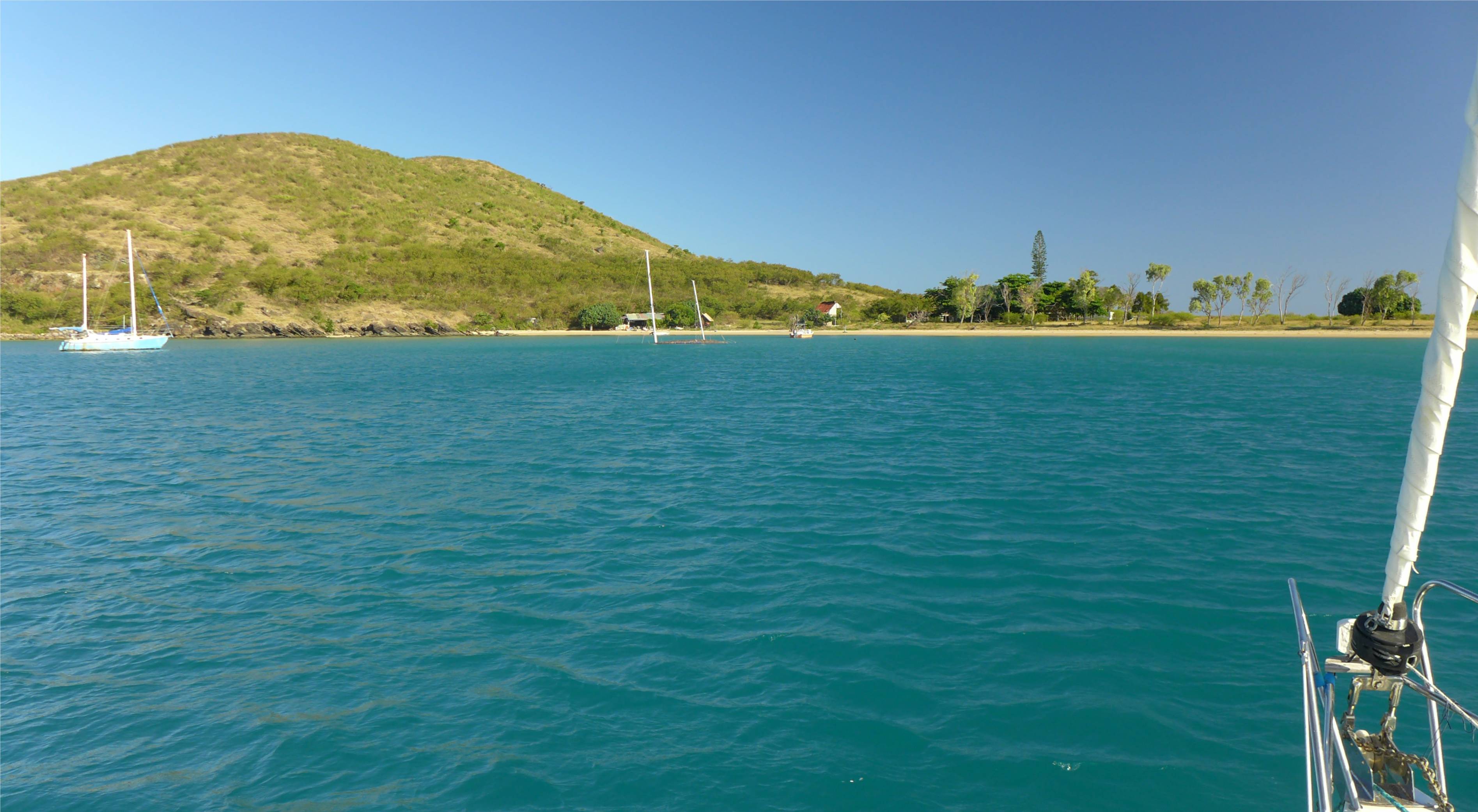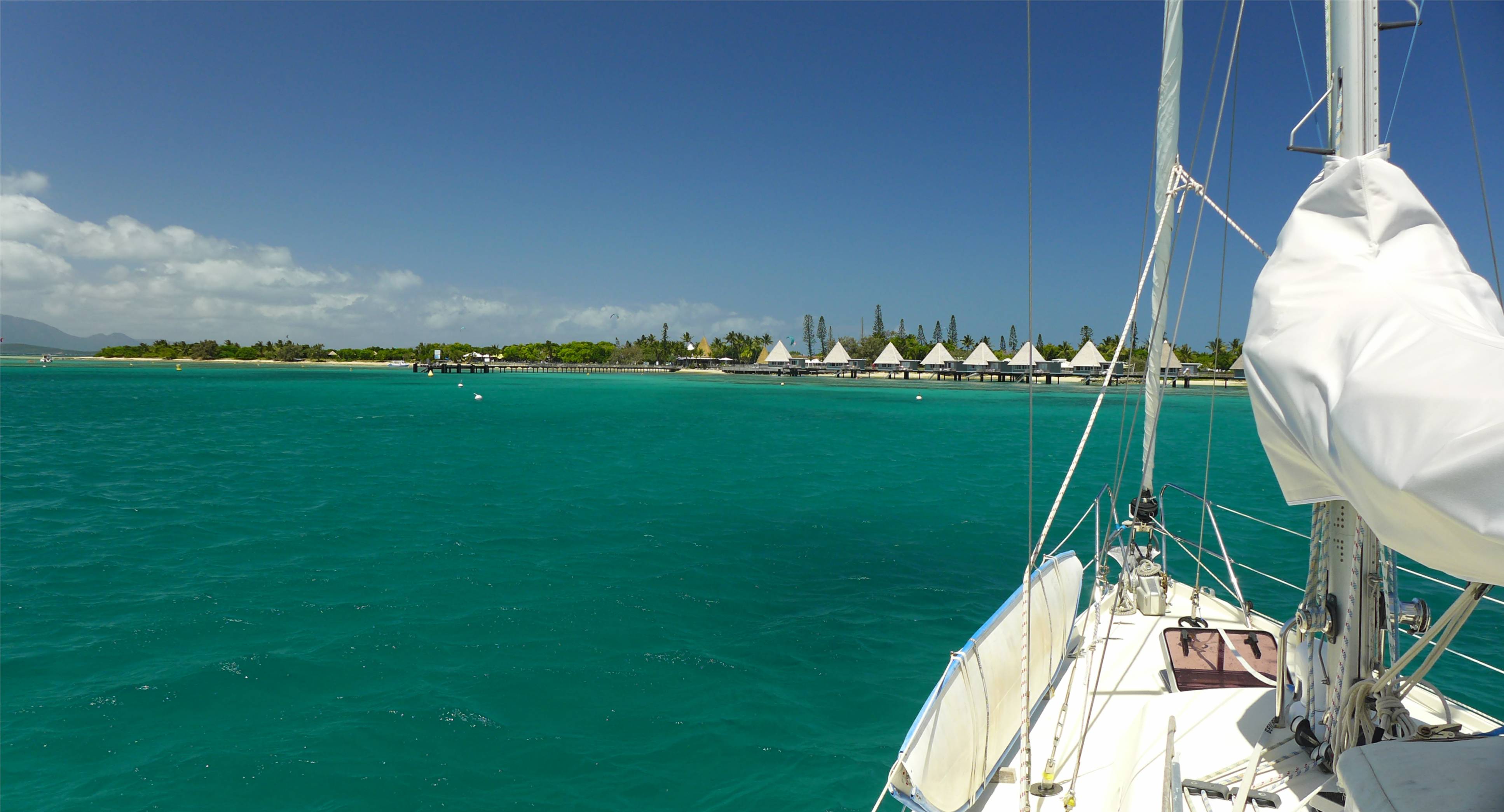 Am Dienstag haben wir Nouméa verlassen und uns ein paar schöne Rifftage eingelegt. Erst lagen wir eine Nacht an Ilot Maître. Auf der kleinen Insel ist ein Hotel mit Wasserbungalows und am Riff gibt es 20 Festmacher-Bojen. Nur an solchen darf man sein Boot vertäuen, denn Ankern ist zum Schutz der Korallen verboten. Auch wenige Meilen weiter, an der Ile Laregnere gibt es ein Bojenfeld. Hier haben wir zwei Nächte verbracht. Es war recht windig, immer wieder haben uns Böen geschüttelt und der Schwell ist gelegentlich übers Riff gelaufen. Wir hatten trotzdem schöne Tage. Am Freitag sind wir dann nach Ilot Mbé Kouen gesegelt. Die Mini-Insel liegt auf einem großen Riff, das einen großzügigen, gut geschützten Ankerplatz bietet.