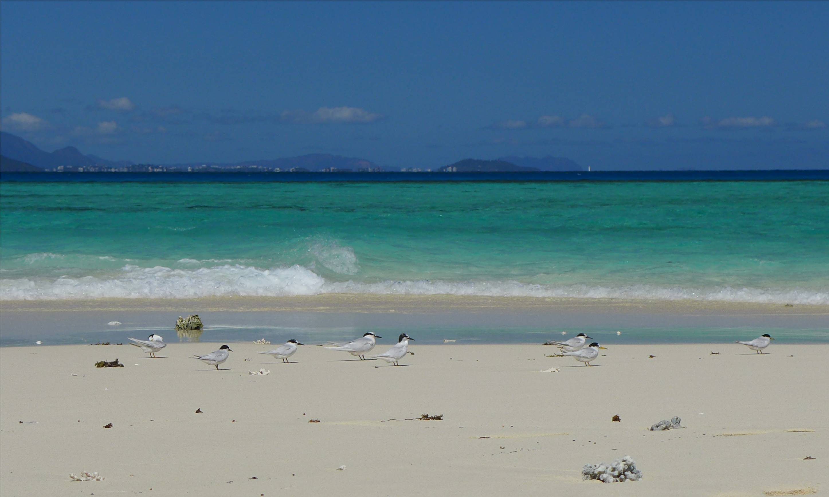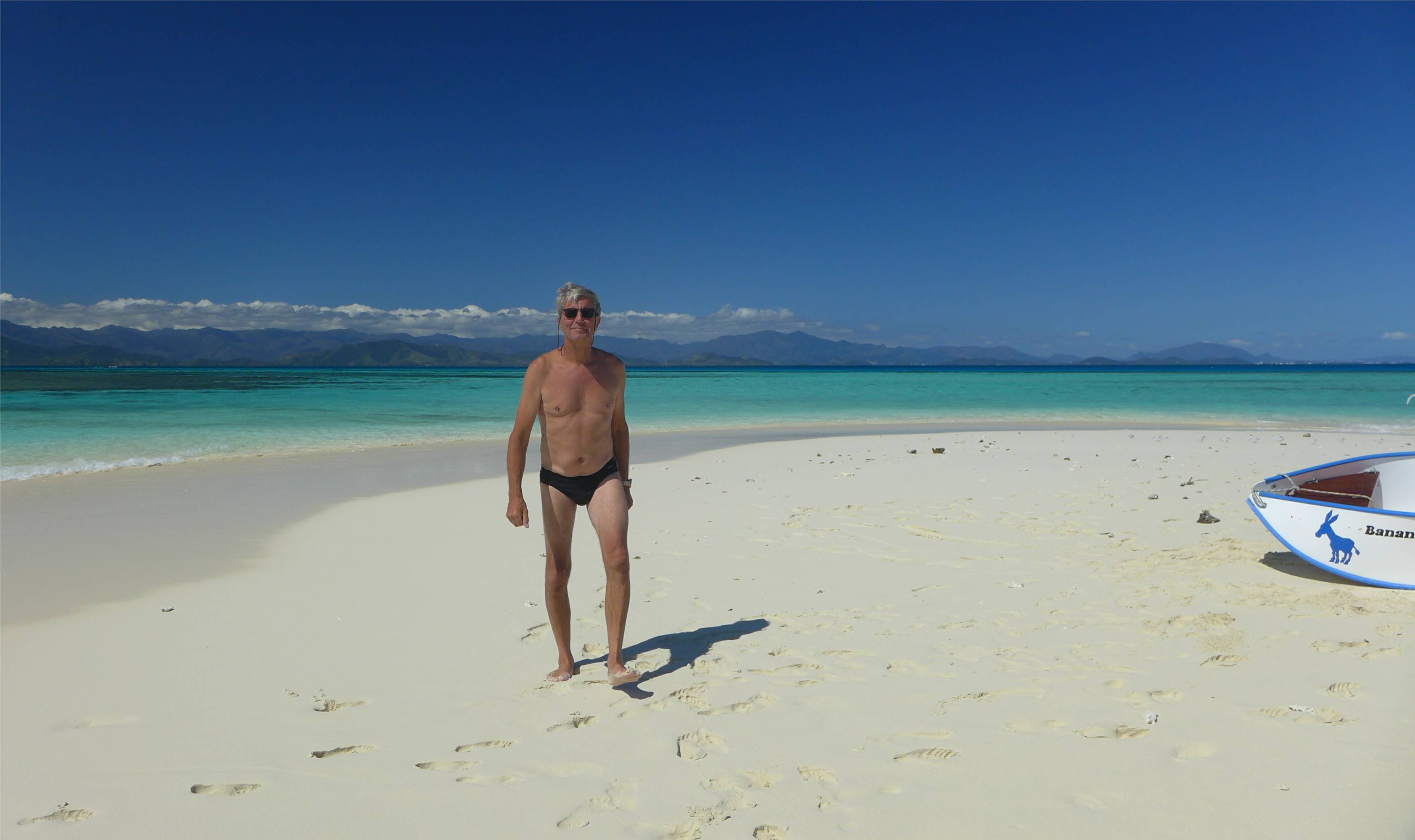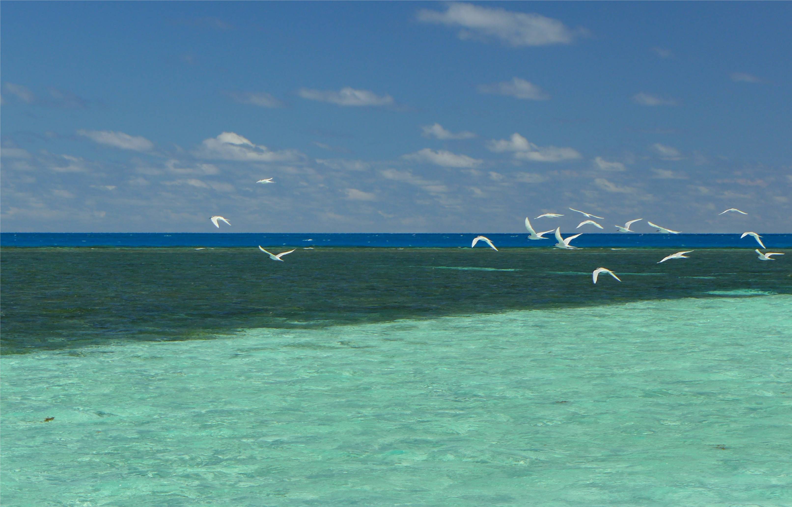 Das Schnorcheln war überhaupt sehr schön, immer wieder gab es etwas Interessantes zu sehen, große Stachelrochen, Kalmare, eine Seeschlange, die kleine Fische aus Löchern jagt, große Fische unter unserem Boot und viele bunte Rifffische. . Haie gibt es hier auch, allerdings haben wir uns nicht unter Wasser getroffen. Einer schwamm ums Boot, den anderen haben beim Spazierengehen auf dem Riffdach gesehen. Das Wasser hat 24 Grad, das ist eine angenehme Badetemperatur, nach längerem Schnorcheln ist es aber schön, sich wieder in der Sonne aufzuwärmen