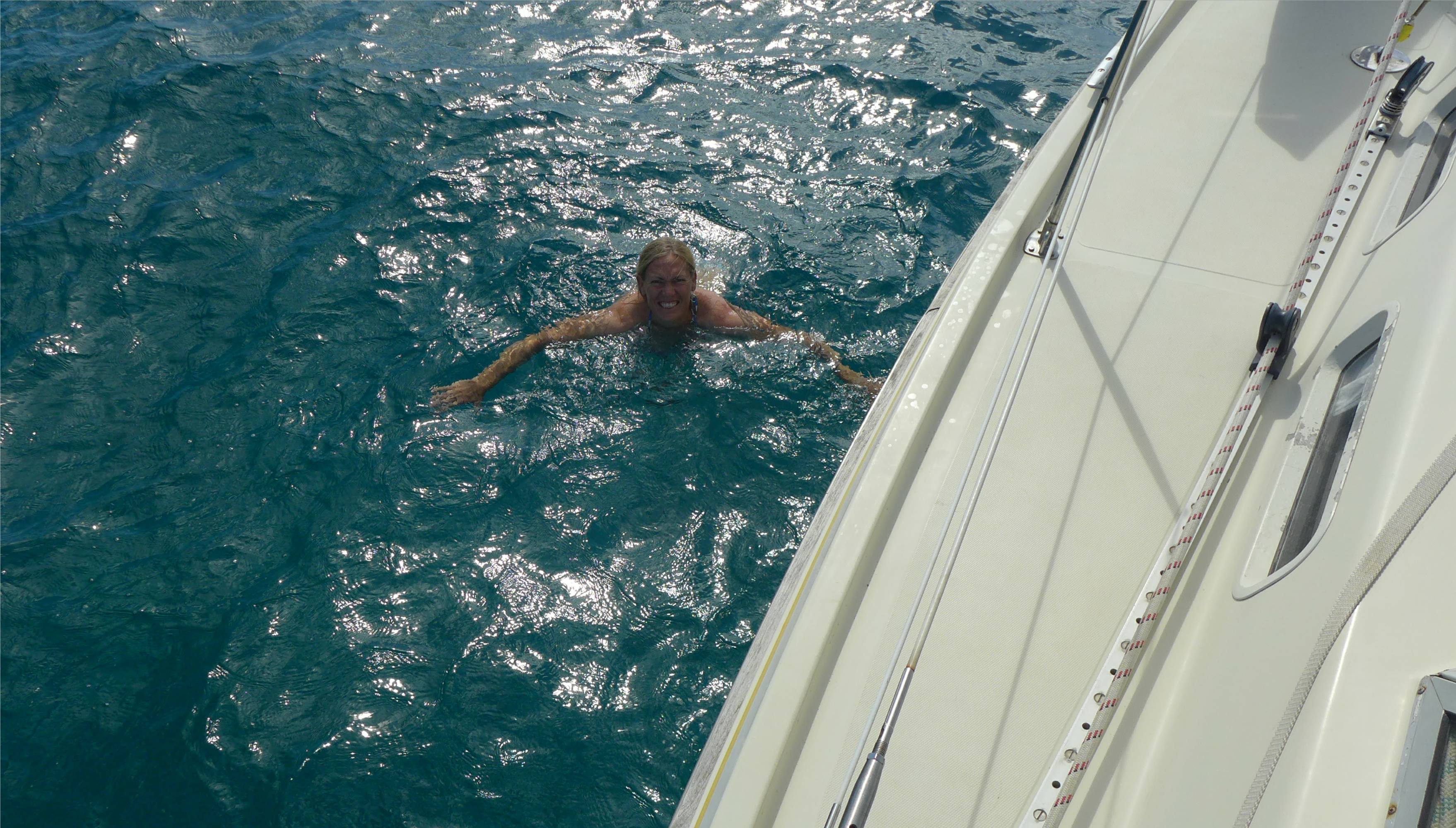 Jetzt liegen wir an einem ruhigen Ankerplatz, der Wind ist eingeschlafen und es sieht aus, als dürften wir uns über eine sehr ruhige Nacht freuen. Wir sind nicht das einzige Boot hier, allerdings das einzige bewohnte. Obwohl das nicht richtig ist. Von einem Boot schauen nur noch die Masten und etwa 20 cm vom Rumpf aus dem Wasser, vermutlich sind also viele Fische eingezogen. Das andere Boot wirkt, als würde es dem gesunkenen bald folgen, es wirkt aufgegeben und die Wasserlinie macht einen ziemlich fragilen, rostigen Eindruck. Morgen geht es weiter, unsere Mari möchte nicht länger auf einem Schiffsfriedhof wohnen.