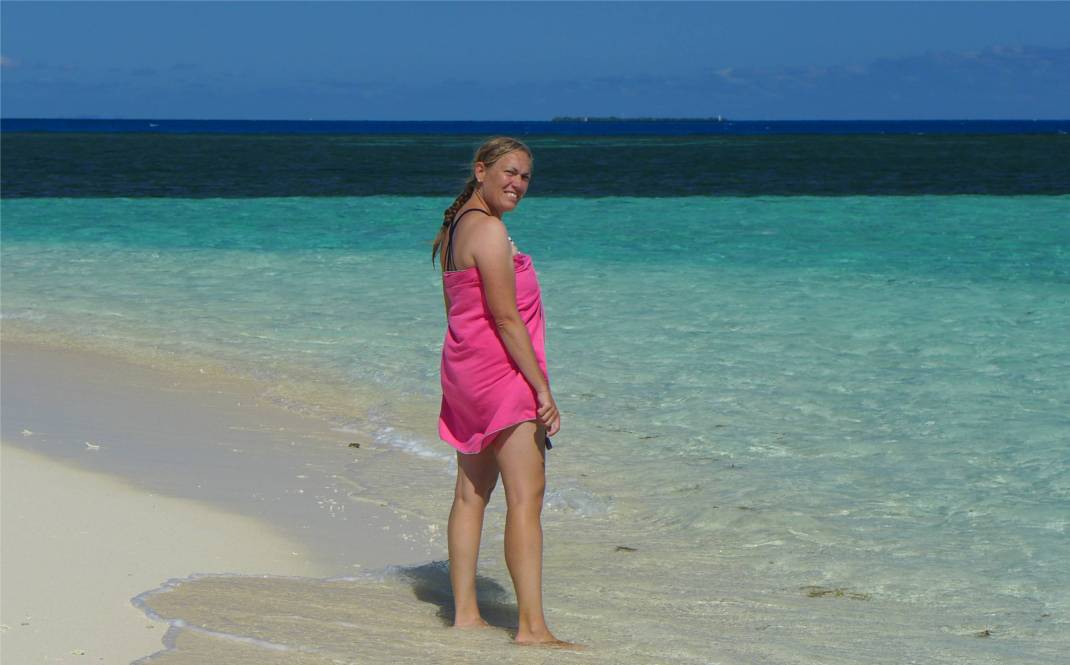 Das Schnorcheln war überhaupt sehr schön, immer wieder gab es etwas Interessantes zu sehen, große Stachelrochen, Kalmare, eine Seeschlange, die kleine Fische aus Löchern jagt, große Fische unter unserem Boot und viele bunte Rifffische. . Haie gibt es hier auch, allerdings haben wir uns nicht unter Wasser getroffen. Einer schwamm ums Boot, den anderen haben beim Spazierengehen auf dem Riffdach gesehen. Das Wasser hat 24 Grad, das ist eine angenehme Badetemperatur, nach längerem Schnorcheln ist es aber schön, sich wieder in der Sonne aufzuwärmen
