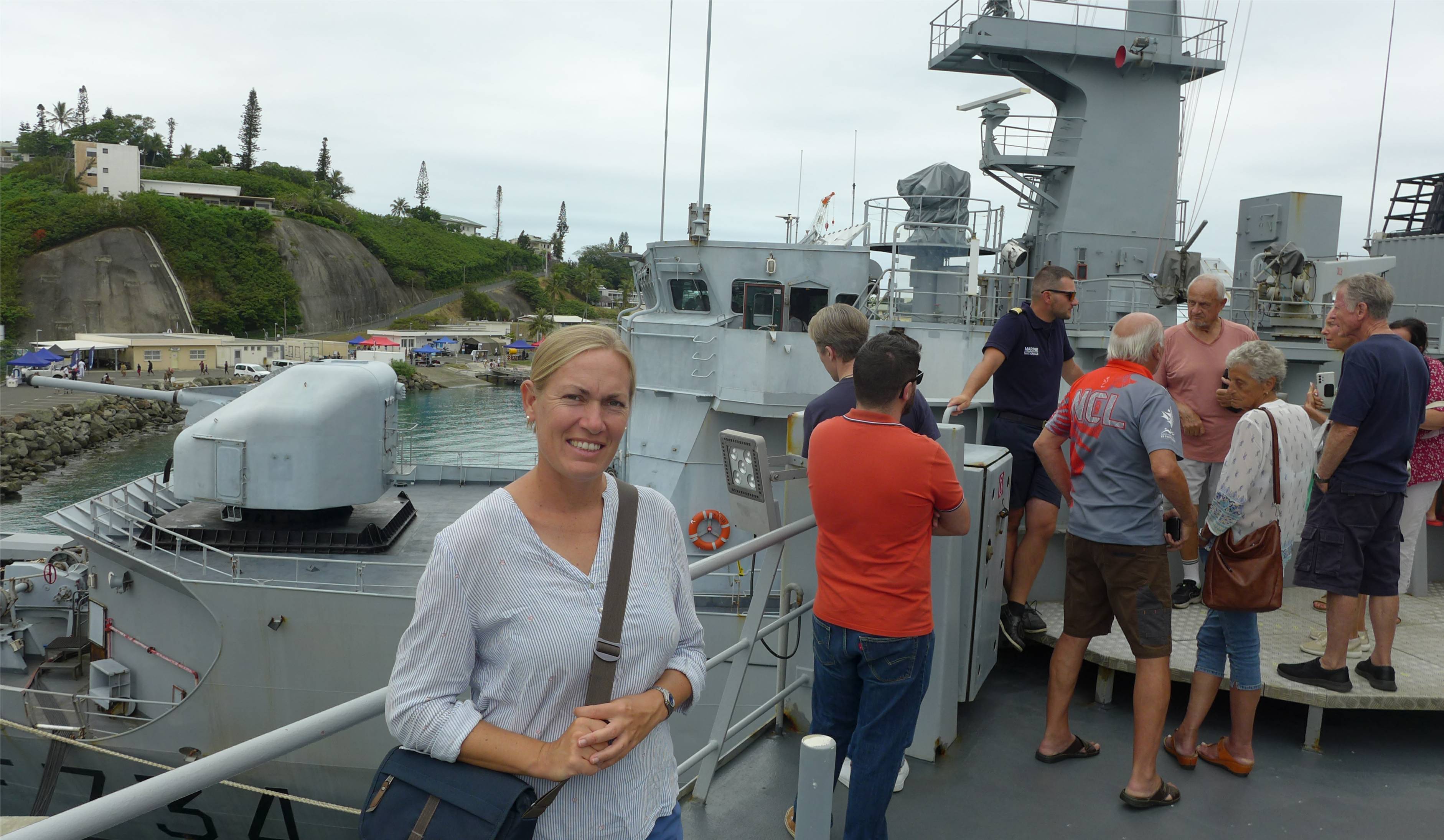 Gestern war Tag der offenen Tür auf dem Marine Stützpunkt hier in Nouméa. Es war wirklich interessant die kleine Basis zu besichtigen. Wir haben einen Rundgang durch die verschiedenen Werkstätten gemacht. In jeder Werkstatt gab es etwas zu sehen, zum Beispiel einen aufgesägten Motor, und Mitarbeiter, die Fragen beantwortet haben. Die Logistikabteilung hat ihre Gerätschaften vom Kran bis zum Gabelstapler vorgeführt und bei der Feuerwehr konnte man Feuer löschen üben. An vielen kleinen Ständen wurden T-Shirts verkauft, für eine Ausbildung bei der Marine geworben und Getränke verkauft. Kinder durften versuchen Wurfleinen in Körbe zu werfen, man konnte Nachtsichtgeräte ausprobieren und sich Waffen erklären lassen. Wir haben festgestellt, dass die Französischen Seenotretter, genau wie die DGzRS in Deutschland, kleine Sammelschiffe aufstellen. An die Seenotretter geht auch ein Teil der Erlöse dieser Veranstaltung. Den ganzen Tag gab es verschiedene Vorführungen und Übungen, die kleinen Boote und der Hubschrauber waren immer wieder im Einsatz.