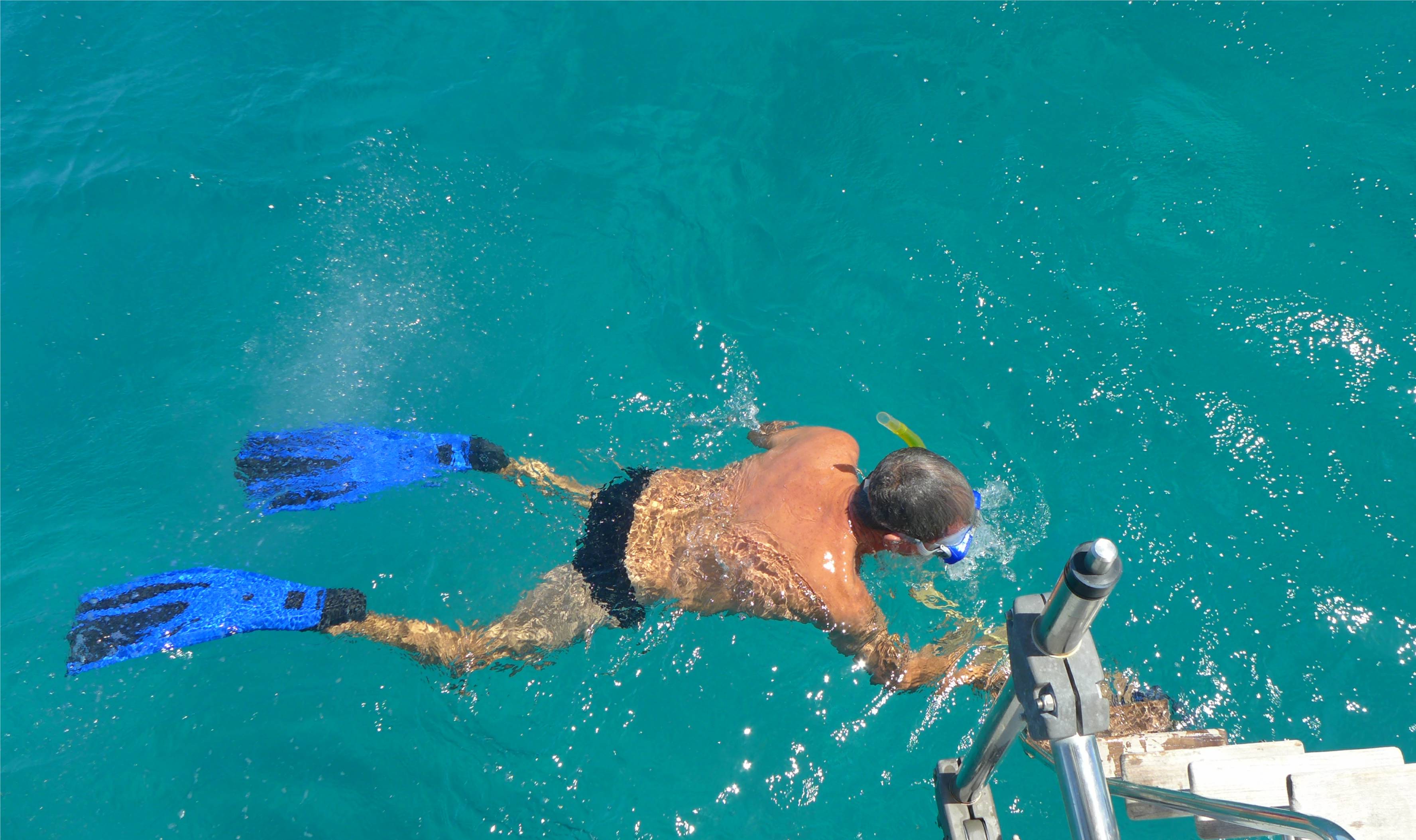 Wir wurden doch etwas überrascht, der Wind war kräftiger als erwartet und kletterte schnell auf 6-7 Bft. Also wählten wir als Ankerplatz für die erste Nacht mal wieder die geschützte Baie de Papaye. Schon auf diesem kurzen Segelschlag wurden wir mal wieder verwöhnt, gleich zweimal gab es Delfinbegleitung, wir sahen Seeschlangen und Schildkröten.