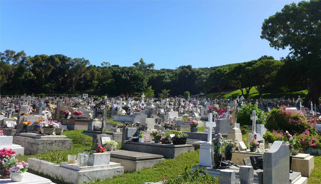 Auch untypische Spots stehen auf unserem Besichtigungsprogramm. Schon häufiger sind wir am Friedhof vorbei gefahren, diesmal haben wir einen Stopp eingelegt und uns umgesehen. Kein schlechter Platz für die letzte Ruhe. Geschmückt sind die Gräber mit Plastikblumen in allen Farben, das sieht zumindest von weitem sehr schön aus.