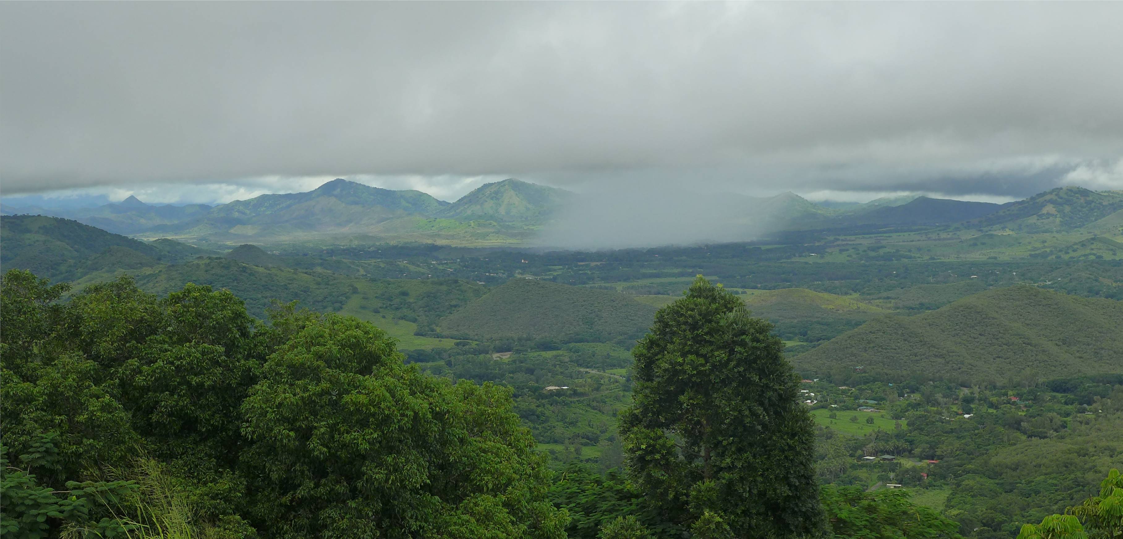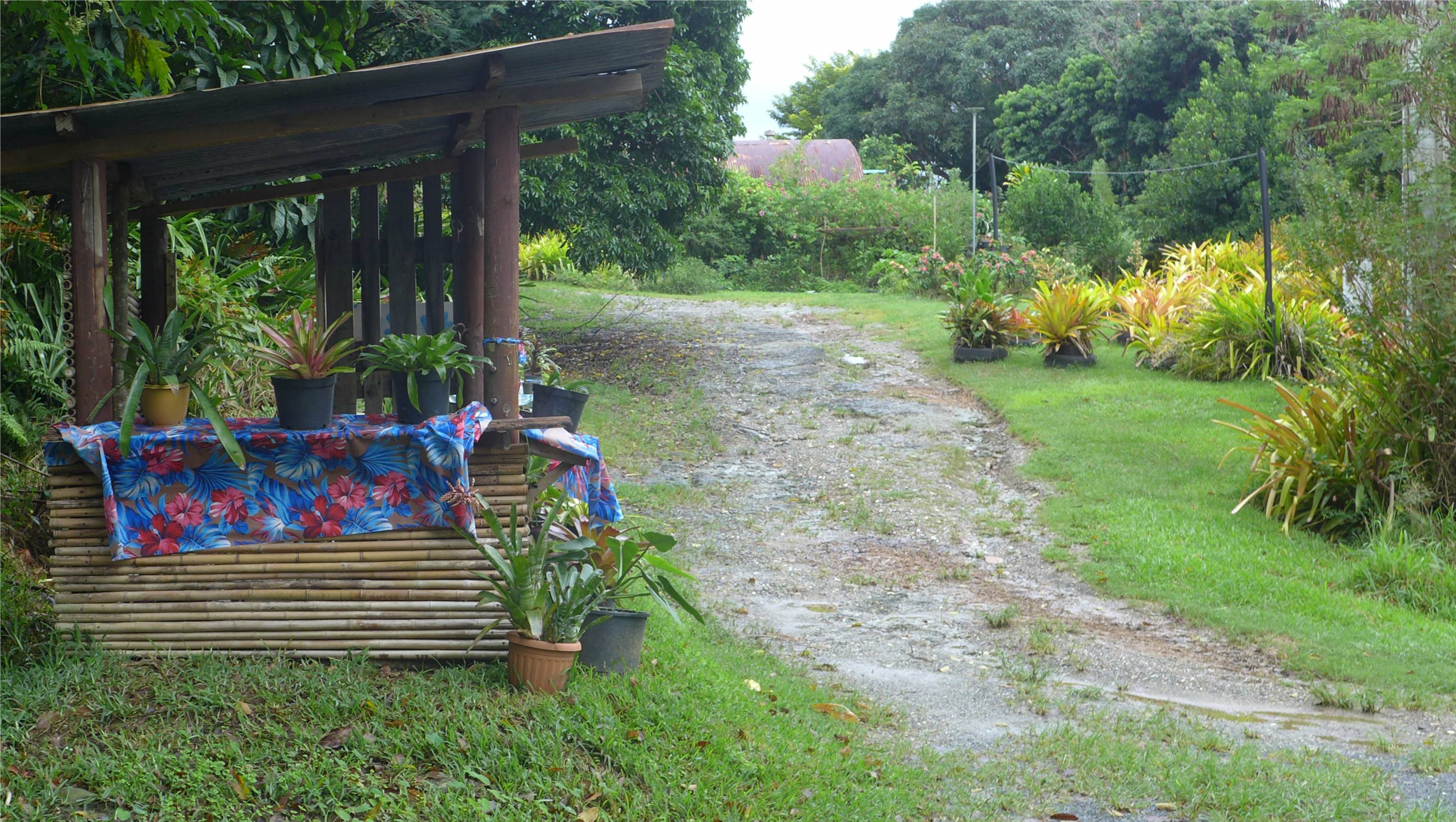 Immer wieder halten wir an und werfen einen Blick auf die wilde Küste. Die dunkelgrüne üppige Vegetation weckt Regenwaldgefühle. Die Pflanzenwelt bietet ihre ganze Vielfalt auf um uns zu begeistern. Hohe Bäume und Schlingpflanzen, breite Kronen und schlanke Nadelbäume, riesige Blätter, Epiphyten, Palmen, Baumfarne und lange Gräser. Um die kleinen Häuser stehen Bougainvillea und Hibiskus-Hecken, in den Gärten wachsen Papaya, Bananen und Taro.