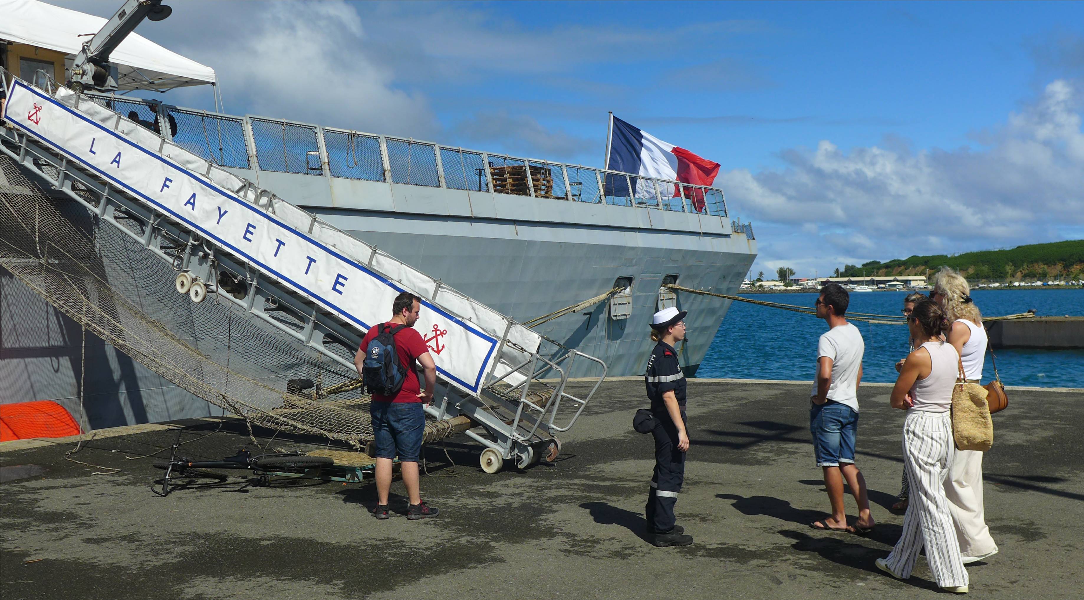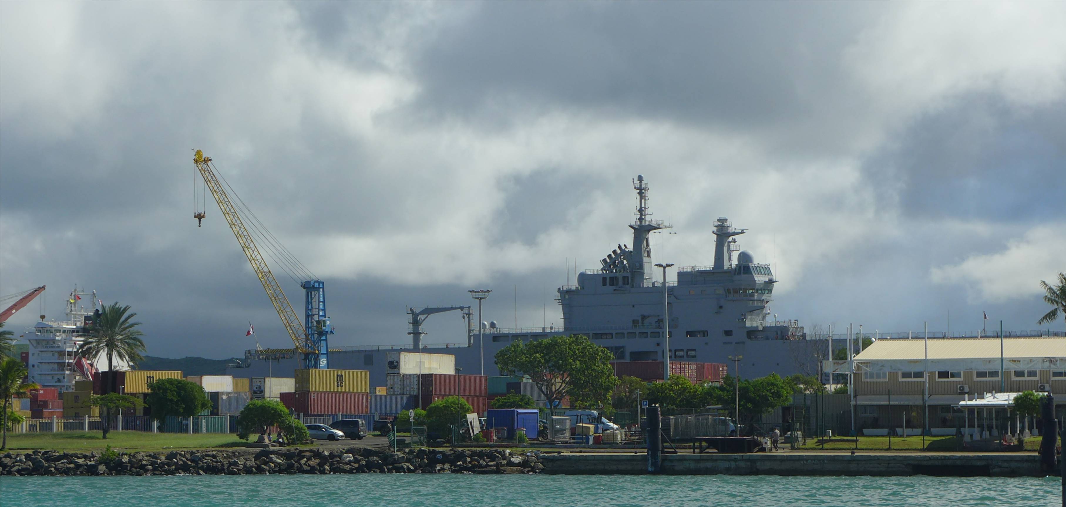 Die französische Fregatte La Fayette dürfen wir besichtigen. Ein junger Mann führt unsere kleine Gruppe über das Schiff und wir erfahren, dass zwei der Schiffe auf der „Mission Jeanne d’Arc“ sind, einer Ausbildungsfahrt für Offiziersanwärter rund um die Welt. Hier in Nouméa treffen sie auf verschiedene andere Schiffe für die internationale Übung „Croix du Sud“. In den nächsten Tagen werden also noch weitere Schiffe erwartet. Wir werden über das Schiff geführt, der angehende Maschinist erzählt nicht nur begeistert vom Antrieb (4 Maschinen!) des Schiffes, sondern erklärt auch die Aufgabenverteilung auf der Brücke, die Waffensysteme an Bord, die relative Unsichtbarkeit auf dem Radar und das Leben an Bord. Alles verstehen wir nicht, trotzdem ist es sehr interessant. Wie schon bei unserem letzten Besuch bei der französischen Marine sind wir begeistert von der Freundlichkeit der jungen Männer und Frauen.