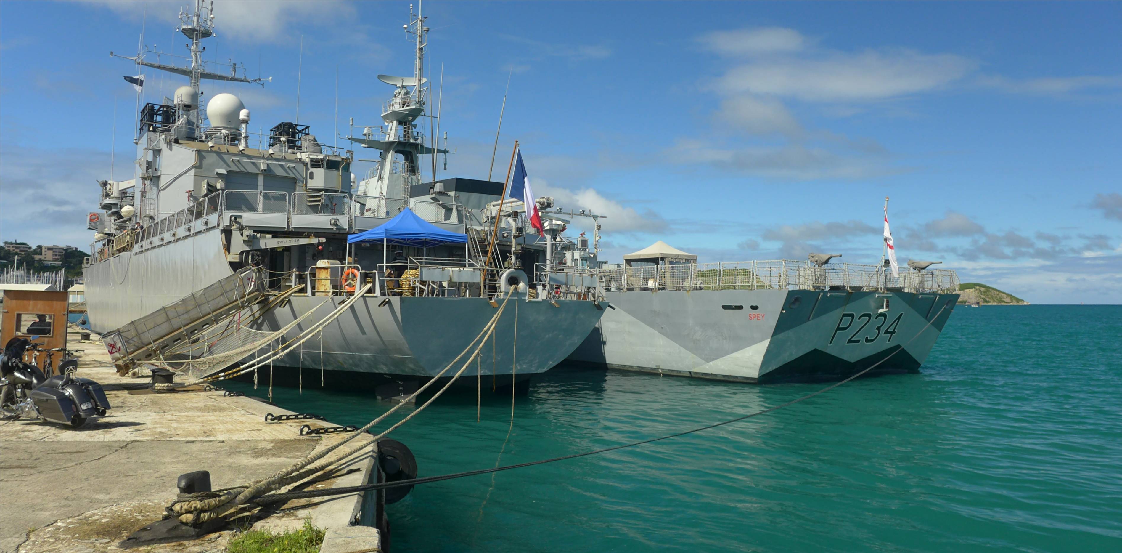 Seit Ende letzter Woche liegen hier lauter Kriegsschiffe. Zunächst fallen uns drei französische große Graue auf. Es sind nicht die beiden, die immer hier stationiert sind, sondert ein Hubschrauberträger und zwei Fregatten. Am Freitag hatten wir bereits beobachtet wie eins der Schiffe eine neue Ankerkette bekommt. Immer eine Länge, also 25m, hing am Kran. Gestern Abend hörten wir ein tiefes Typhon und wussten, dass wieder ein interessantes Schiff angekommen ist. Auf dem Aufbau unserer Mari stehend konnten wir zwei weitere große graue Schiffe beim Einlaufen beobachten. Grund genug uns die Angelegenheit noch mal von Nahem anzusehen. Bei den Neuankömmlingen handelt es sich um die USS Oakland und die HMS Spey, also US-amerikanische und britische Gäste.