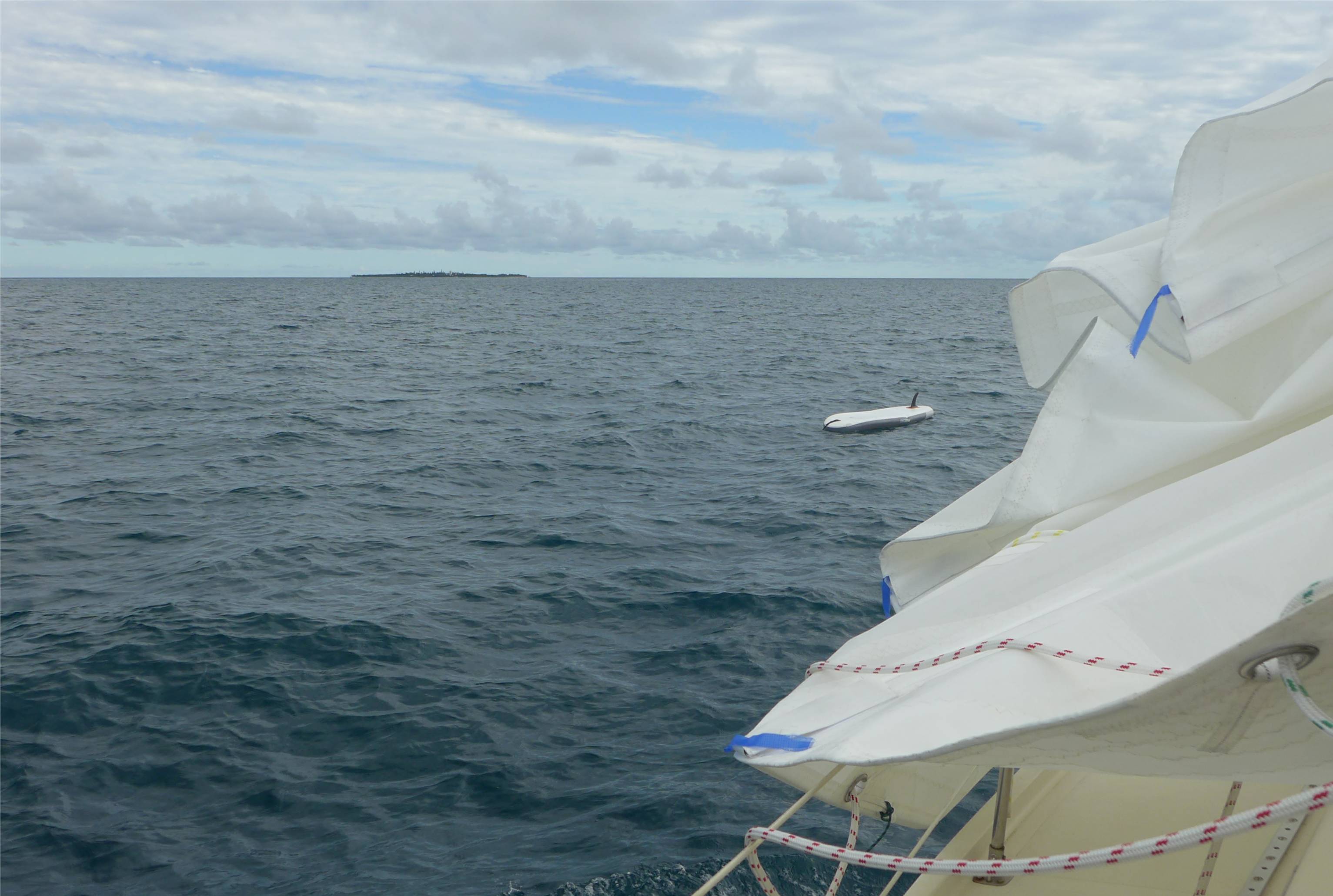 Leider soll das Wetter sich deutlich verschlechtern, wir segeln mit einem frischen Südostwind zurück nach Nouméa. Kaum sind wir in Sichtweite der Stadt meldet sich das Funkgerät. Die „Maritime Police“ will wissen wo wir hinfahren und das Paddleboard abholen. Das scheint wichtig zu sein. Ob es ein Beweisstück ist? Liegt gar ein Verbrechen vor? Vielleicht war es ganz gut, dass wir damit nicht durch die Gegend gepaddelt sind. Wir stellen uns vor was passiert sein könnte: ein Hai hat den Menschen vom Bord gefuttert oder es gab einen Mord und der Mörder ist auf dem Brett geflohen. Kriminalgeschichten haben eine gewisse Tradition auf Marisol seit wir uns in Langör eine Geschichte um einen Mord im Kapitänshaus ausgedacht haben. Das macht aber nur Spaß, solange man ganz sicher ist, dass es Fiktion ist.
