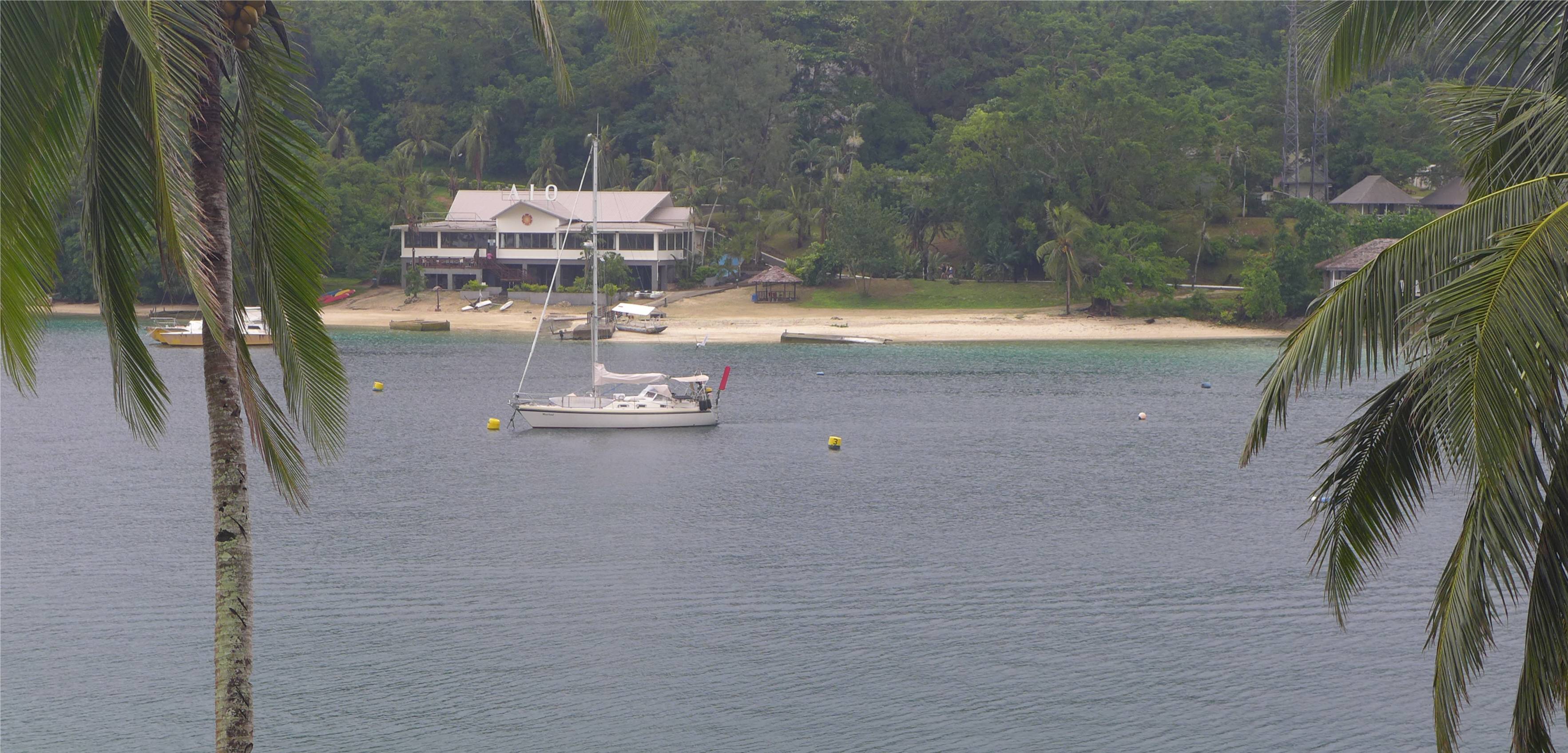 Über Nacht soll der Wind auf Süd drehen. Wir übernachten an einer Boje in der Anse Majic und haben hier eine wunderbar ruhige Nacht unter einem gigantischen Sternenhimmel. In unseren Papieren steht, dass wir Neukaledonien am Freitag verlassen wollen, so ist diese Nacht vor Anker nach dem Ausklarieren nicht mal in einer Grauzone, sondern ganz und gar legal. Frankreich ist eine sehr Seglerfreundliche Nation, wir freuen uns über den entspannten Umgang. Wir waren bereits am Mittwoch bei den Behörden (Immigration, Zoll, Port Captain) und haben unsere Ausreisepapiere bekommen. Da Donnerstag ein Feiertag, Freitag ein Brückentag und am Wochenende ohnehin geschlossen ist, muss jeder der vor Montagmittag abreisen will, am Mittwoch seine Behördenbesuche erledigen. In Neukaledonien müssen wir keinerlei Gebühren bezahlen, ebenfalls sehr sympathisch. Sehr lustig finden wir es, dass wir mal wieder einen Stegnachbarn aus unserer Reihenhaus-Marina treffen. Er arbeitet im Hafenbüro.