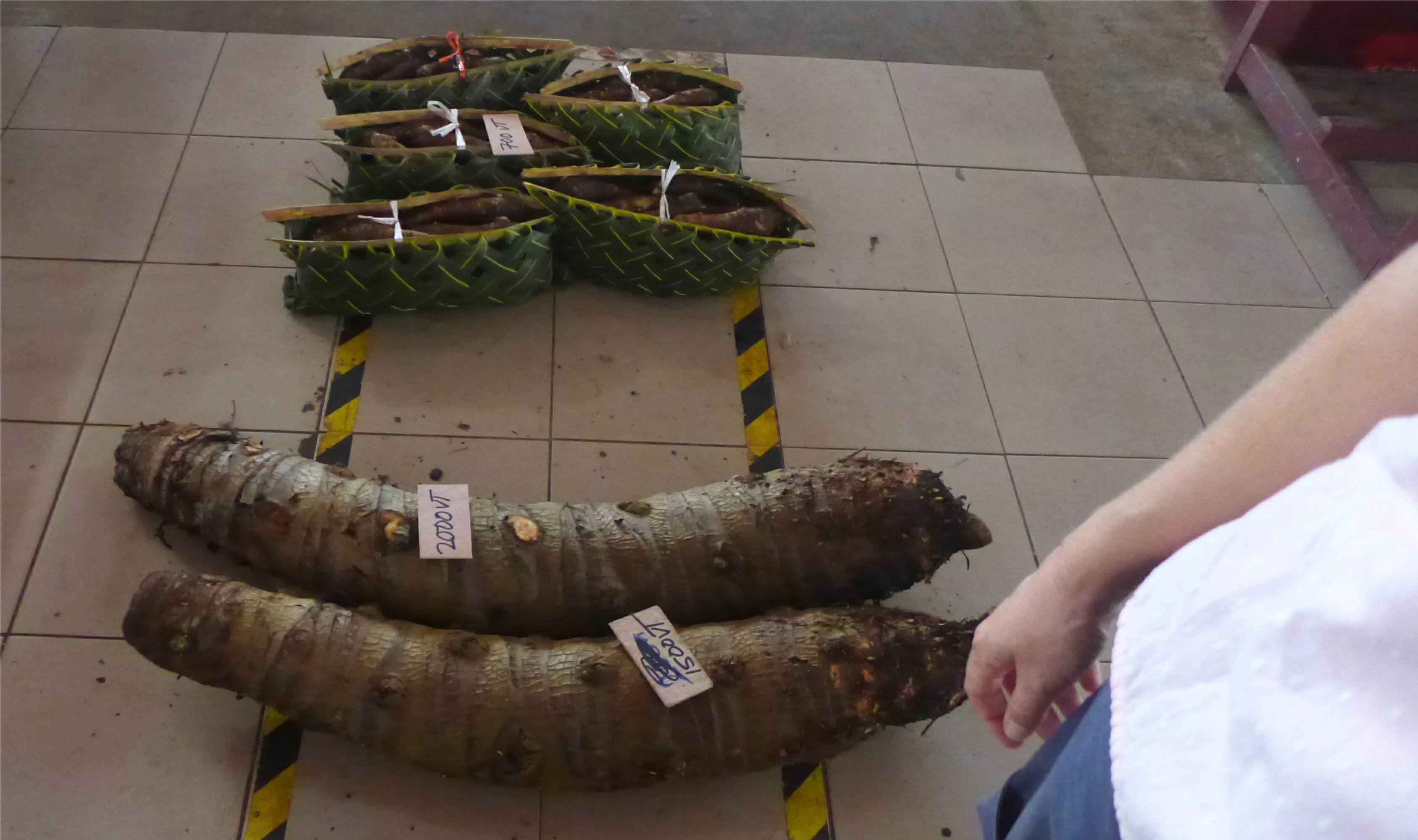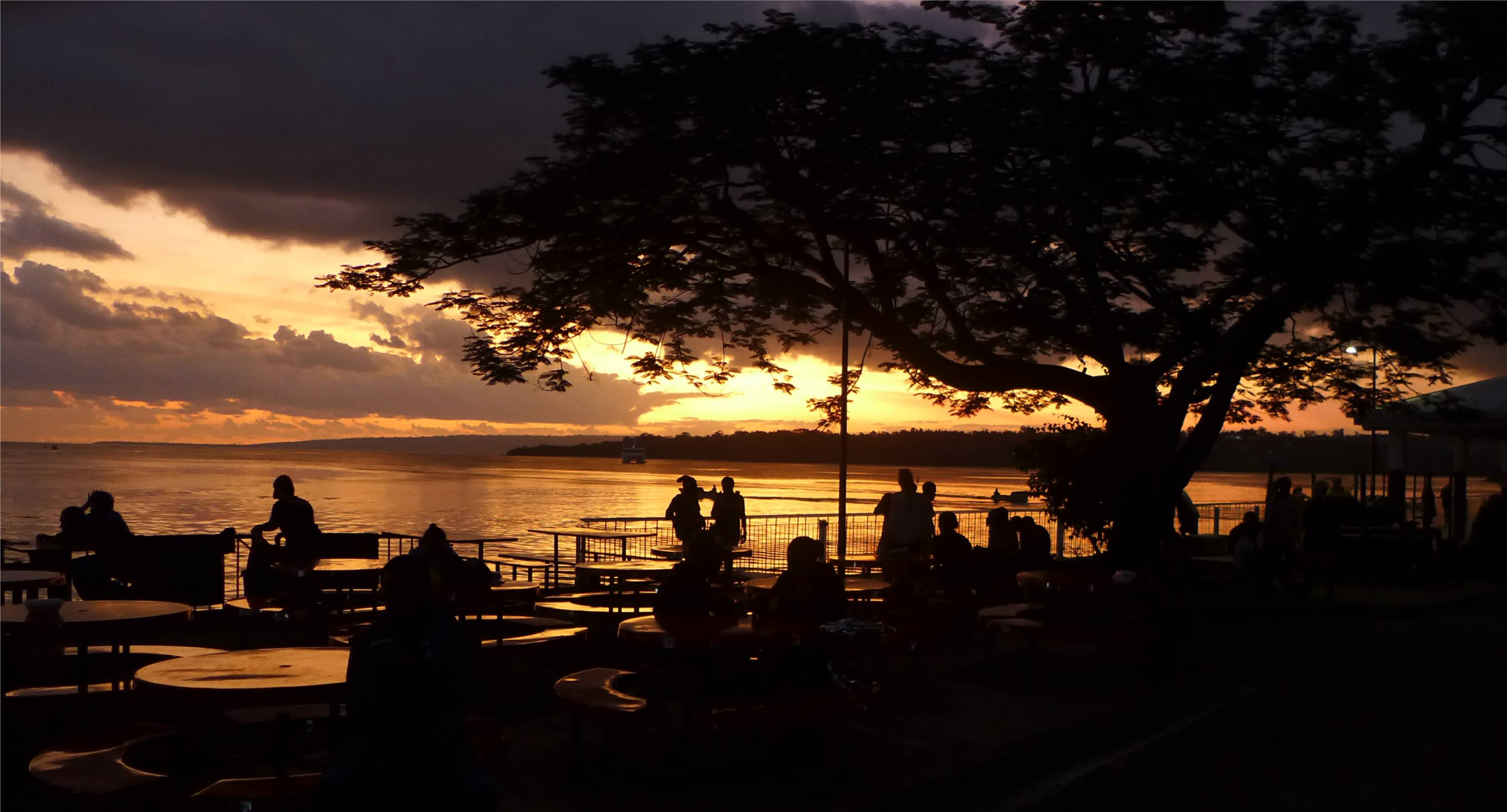 Der Markt hat scheinbar immer geöffnet. Die Menschen leben quasi auf dem Markt bis sie ihre Waren verkauft haben, Kinder spielen, Babys werden gestillt, man schläft dort, unterhält sich mit den Nachbarn und wartet auf Kundschaft. Verkauft werden Taro, Yams, Ingwer, frische Erdnüsse, Kokosnüsse, Kürbis, Pampelmusen, Pak Choi, Salat und, zu Nobbis Freude, Unmengen Ananas. An der Wasserseite gibt es lauter Imbissstände, die eine Vielzahl von Gerichten anbieten und mittags sehr gut besucht sind.