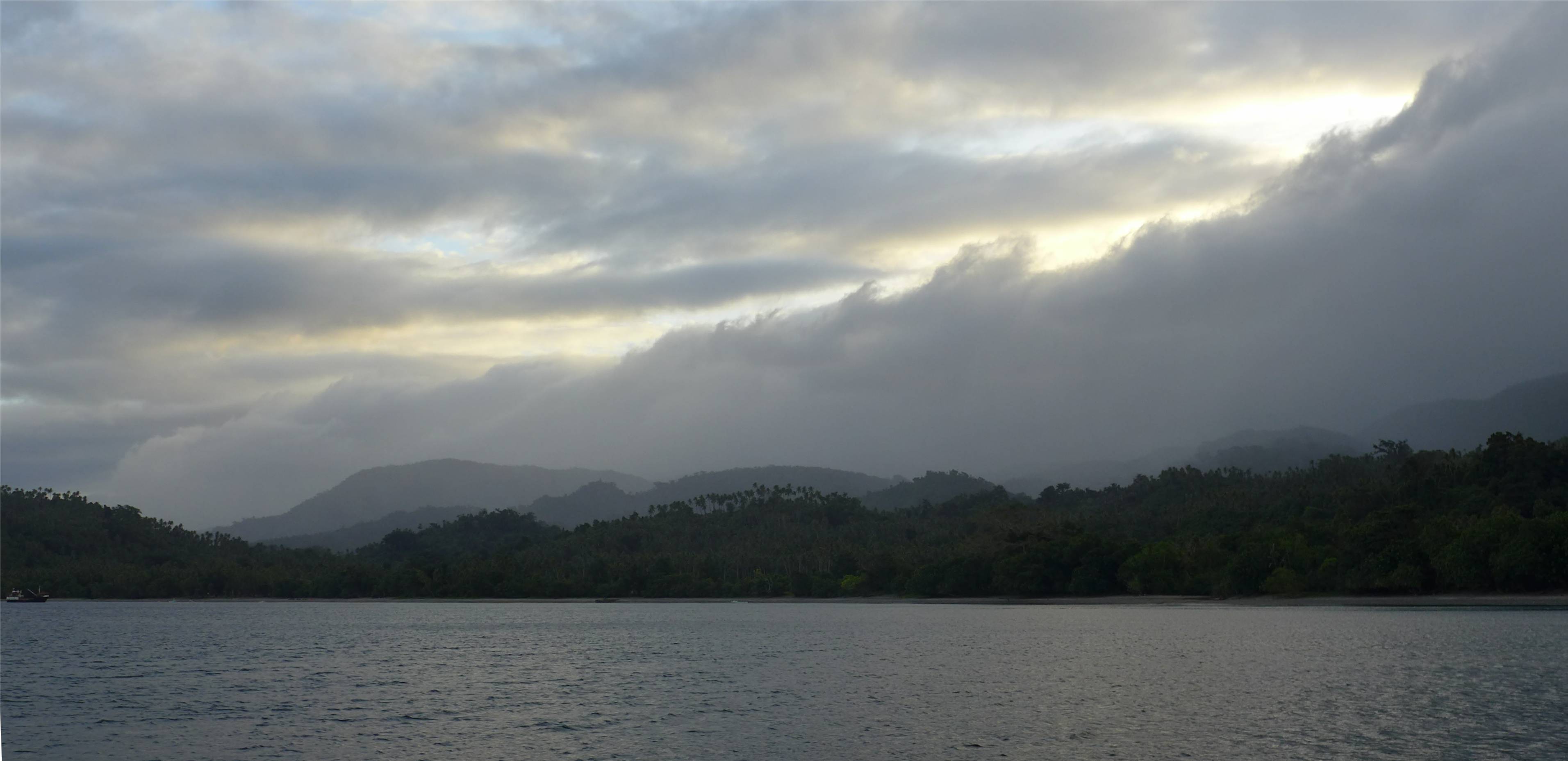 Die Überfahrt von Pentecost zurück nach Malakula bietet deutlich mehr Abwechslung als der Langfahrtsegler sich wünscht. Vor uns liegt ein langer Schlag, also klingelt Sonntagmorgen der Wecker, es gibt Kaffee und dann gehen wir Anker auf. Wir setzten das Groß im ersten Reff und segeln ganz gemütlich los. Eine dicke dunkle Wolke schiebt sich durch die Düse zwischen Ambrym und Pentecost und hat Wind im Gepäck. 35 Knoten in Böen, da werden die Wellen platt gedrückt. Wer weiß, was da noch kommt. Wir binden das zweite Reff ins Groß, Böen mit deutlich über 40kn machen deutlich, dass das eine ganz gute Idee war. Immerhin sind wir schnell. Die Wolke zieht vorbei, der Wind nimmt ab. Wir reffen aus, der Seegang ist schauklig, das kennen wir ja bereits. Der Wind verschwindet ganz. Wir motoren, das wäre nicht so schlimm, wenn der Seegang uns nicht so quälen würde. Wir binden wieder ein Reff ins Groß, weil das Segel bei jeder Welle hin und her schlägt, die Segellatten biegen sich, der Mast bebt. Nicht mal eine Stunde später sind wir froh um das Reff, wir haben wieder frischen Wind und rauschen mit sechs bis sieben Knoten unserem Ziel entgegen. Die Einfahrt nach Port Stanley ist einfach, die Durchfahrt zwischen zwei Inseln ist gut zu sehen und sehr tief. Plötzlich taucht etwas großes Schwarzes ganz am Rande meines Gesichtsfeldes auf und ich erschrecke sehr (zugegebenermaßen ist es nicht so schwierig mich zu erschrecken). Fünf Delfine springen synchron aus dem Wasser. Was für ein netter Schreck. Die schlanken, kleinen Tiere begleiten uns noch eine ganze Weile. Wir bergen die Segel und laufen den Ankerplatz an. Hier könnte man liegen, aber kuschelig und geschützt ist es nicht. Nur eine Meile weiter gibt es einen anderen Platz hinter einem Riff. Da die Bewölkung so dunkel ist, sehen wir nicht viel, trauen uns mit Hilfe des Satellitenbildes aber trotzdem zwischen die Riffe. Hier gefällt es uns. Recht tief ist der Platz, fast 20m, aber ab und zu muss man seine Ankerkette ja auch mal baden. Nach 48 Meilen und einem sehr anstrengenden Segeltag sind wir froh angekommen zu sein.