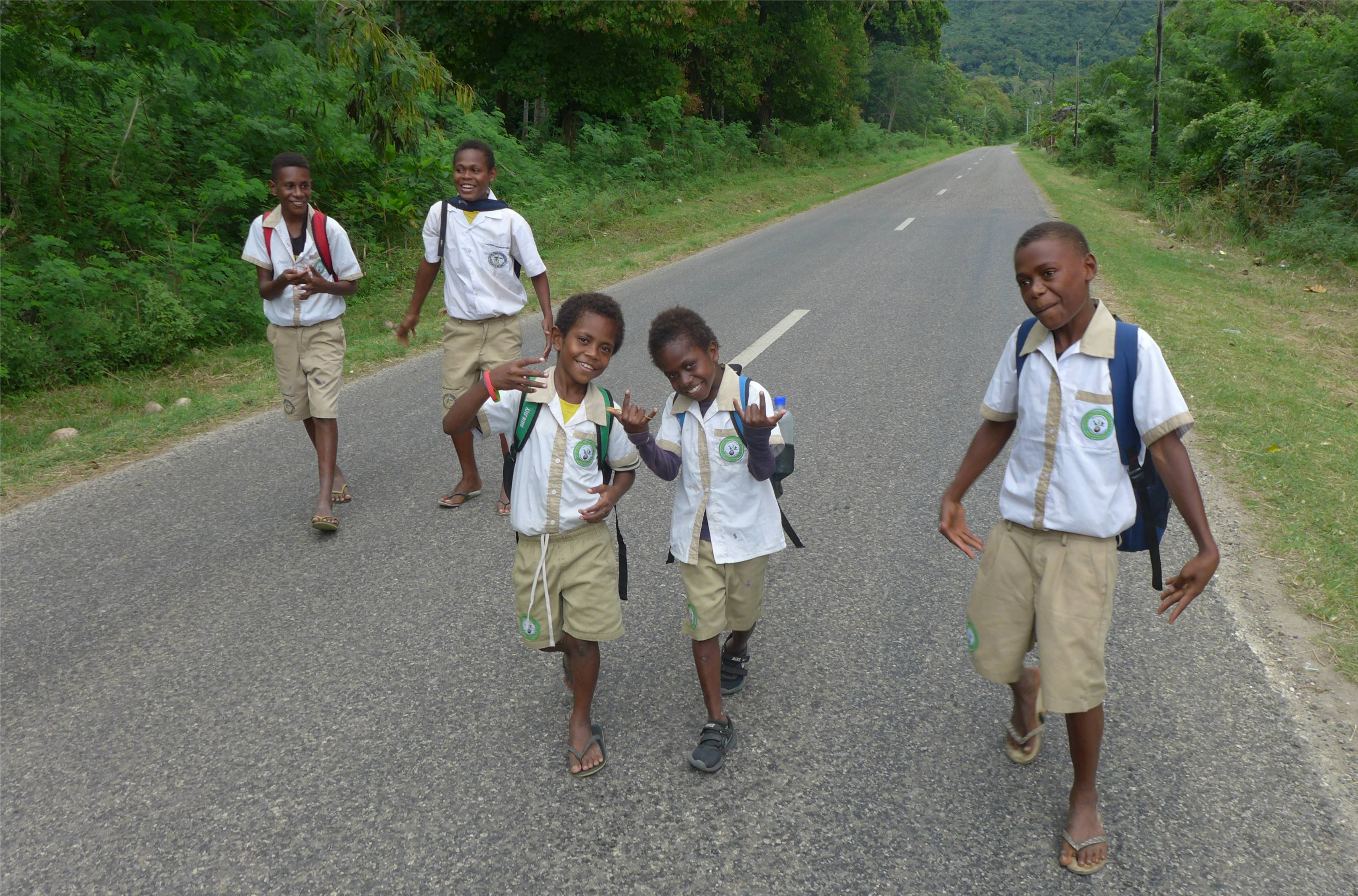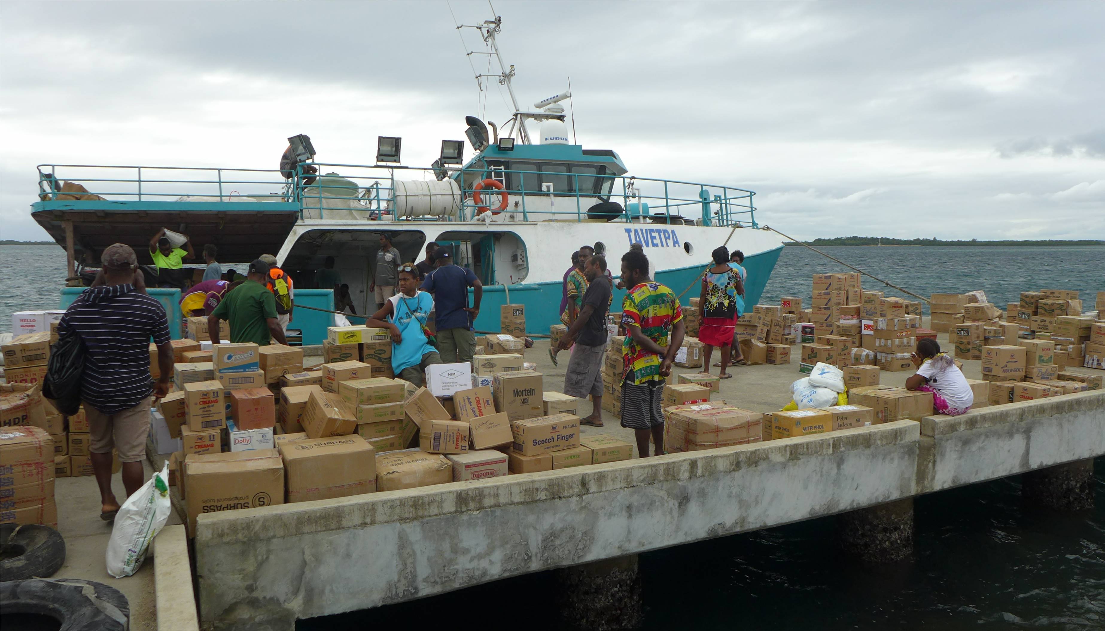 Auf dem Anleger stapeln sich die Waren. Die kleine Fähre pendelt zwischen Santo und Malakula und versorgt den Ort. Auf den Kartons stehen jeweils der Empfänger und die Anzahl der Pakete. Während noch Ladung gelöscht wird, wird gleichzeitig bereits neue Ladung an Bord gebracht. Kava in großen Säcken soll nach Santo gebracht werden. Das kleine Schiff hängt ziemlich schräg an der Pier. Ein Durcheinander, irgendjemand hat sicher den Durchblick. Wir laufen drei Kilometer zum Laden in Lakatoro und finden eine gut ausgebaute, zweispurige Straße vor und auch etwas Verkehr. Nette Grundstücke und arme, heruntergekommene Häuser wechseln sich ab. Es gibt einige ganz kleine Läden, eine Tankstelle, einen Bauhof und ein paar Bars. Und, leider viel Müll. Am Straßenrand liegen Verpackungen und Plastikflaschen. Einige Grundstücksbesitzer räumen bei sich auf dem Grundstück und am Straßenrand vor ihrem Haus auf. Der Müll ist ein riesiges Problem. Schon auf den kleineren Inseln ist uns aufgefallen, dass der Müll einfach fallengelassen wird. Als die Kinder nach dem Land-Diving Wassereis gegessen haben, flog die Verpackung einfach in die Büsche. Wenn wir den Kindern einen Bonbon schenken, packen wir sie ihnen aus, oder sammeln das Papier ein, sonst geht es direkt ins Meer. Dass es auf Pentecost, in der Revelieu Bay auf Epi oder in den Maskelynen recht sauber war, liegt nicht an der guten Müllentsorgung, sondern an dem sehr eingeschränkten Konsum. An allen Orten liegen hinter fast jeder Hütte leere Waschmittelflaschen und Getränkedosen. Hier, auf dem Weg nach Lakatoro haben wir aber sehr viel mehr Müll gesehen, als in den Orten zuvor. Im besten Fall wird der Müll verbrannt, allerdings sind die Feuer nicht heiß genug und so schwelt es nur vor sich hin. Meist weht er am Straßenrand ins Gebüsch oder ins Meer. Besorgniserregend. Mit steigender Verfügbarkeit verpackter Produkte wird das Müllproblem in kurzer Zeit dramatisch wachsen.