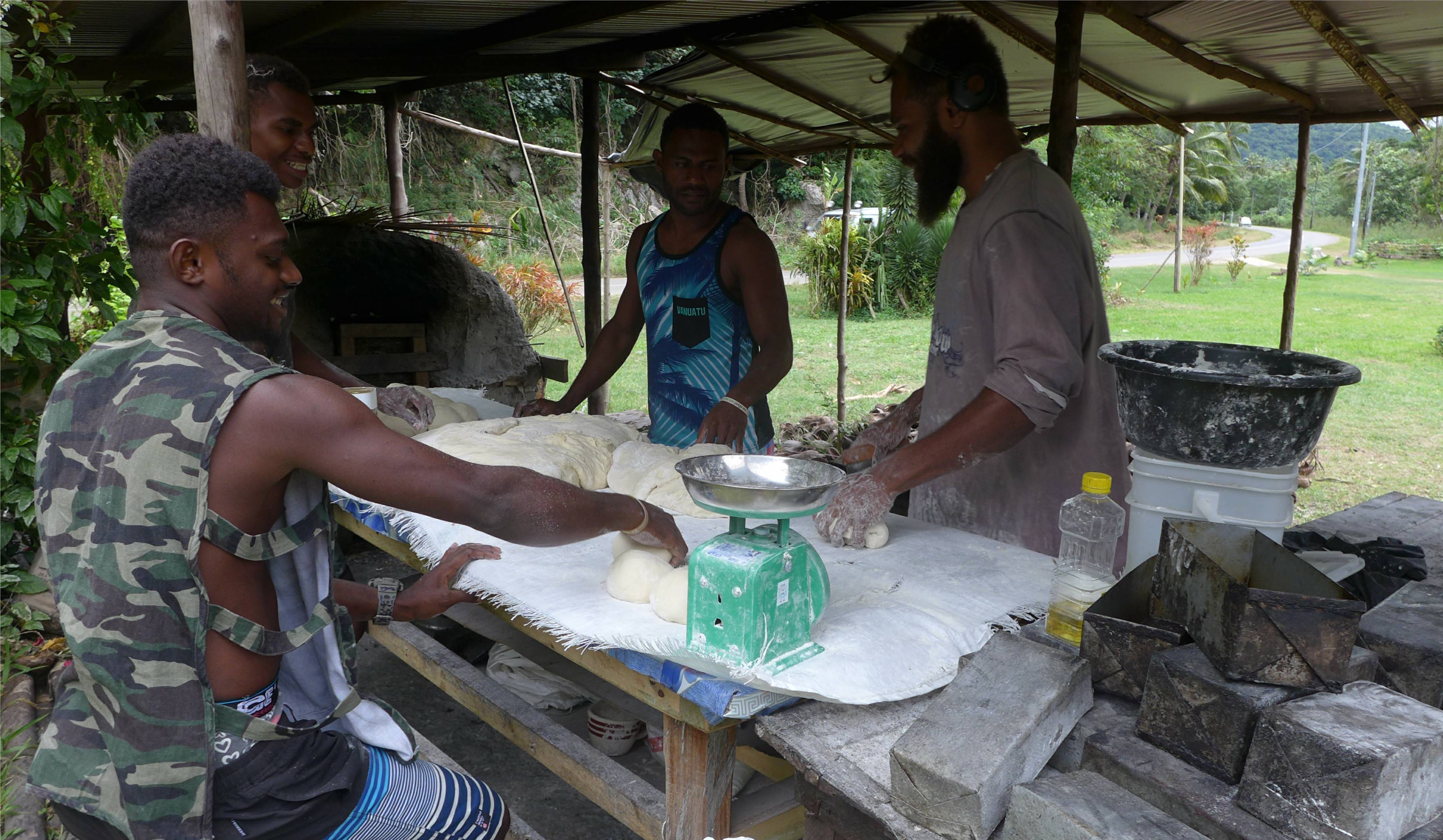 In Lakatoro weist ein Schild auf ein Handwerkszentrum hin. Das Angebot beschränkt sich weitgehend auf geflochtene Taschen. Die zuständige Dame spricht gut Englisch, fragt uns aus, wo wir herkommen, wie lange wir schon unterwegs sind, wo wir vor Anker liegen und erzählt fröhlich wo sie wohnt, wo wir einkaufen können und dass der Markt geöffnet hat. Auf dem Markt kaufen wir Pampelmusen, Kokosnüsse und Zitronen und stellen fest, dass die Preise hier ein halb bis ein viertel so hoch sind wie in Port Vila. Auf der anderen Seite des Sportplatzes gibt es eine Bank und den Laden der Kooperative. Der Manager erzählt uns, dass 670 Menschen Anteile besitzen und Dividende ausgeschüttet bekommen, fast alle leben hier im Ort. Er ist stolz darauf für die Kooperative zu arbeiten und zeigt uns, was sie alles im Angebot haben. Die Produktpalette ist beachtlich, Lebensmittel, Schulsachen, Haushaltswaren und Kleidung. Für uns gibt es hier frisches Brot und Bier.