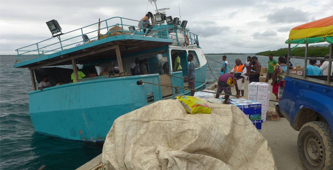Auf dem Anleger stapeln sich die Waren. Die kleine Fähre pendelt zwischen Santo und Malakula und versorgt den Ort. Auf den Kartons stehen jeweils der Empfänger und die Anzahl der Pakete. Während noch Ladung gelöscht wird, wird gleichzeitig bereits neue Ladung an Bord gebracht. Kava in großen Säcken soll nach Santo gebracht werden. Das kleine Schiff hängt ziemlich schräg an der Pier. Ein Durcheinander, irgendjemand hat sicher den Durchblick. Wir laufen drei Kilometer zum Laden in Lakatoro und finden eine gut ausgebaute, zweispurige Straße vor und auch etwas Verkehr. Nette Grundstücke und arme, heruntergekommene Häuser wechseln sich ab. Es gibt einige ganz kleine Läden, eine Tankstelle, einen Bauhof und ein paar Bars. Und, leider viel Müll. Am Straßenrand liegen Verpackungen und Plastikflaschen. Einige Grundstücksbesitzer räumen bei sich auf dem Grundstück und am Straßenrand vor ihrem Haus auf. Der Müll ist ein riesiges Problem. Schon auf den kleineren Inseln ist uns aufgefallen, dass der Müll einfach fallengelassen wird. Als die Kinder nach dem Land-Diving Wassereis gegessen haben, flog die Verpackung einfach in die Büsche. Wenn wir den Kindern einen Bonbon schenken, packen wir sie ihnen aus, oder sammeln das Papier ein, sonst geht es direkt ins Meer. Dass es auf Pentecost, in der Revelieu Bay auf Epi oder in den Maskelynen recht sauber war, liegt nicht an der guten Müllentsorgung, sondern an dem sehr eingeschränkten Konsum. An allen Orten liegen hinter fast jeder Hütte leere Waschmittelflaschen und Getränkedosen. Hier, auf dem Weg nach Lakatoro haben wir aber sehr viel mehr Müll gesehen, als in den Orten zuvor. Im besten Fall wird der Müll verbrannt, allerdings sind die Feuer nicht heiß genug und so schwelt es nur vor sich hin. Meist weht er am Straßenrand ins Gebüsch oder ins Meer. Besorgniserregend. Mit steigender Verfügbarkeit verpackter Produkte wird das Müllproblem in kurzer Zeit dramatisch wachsen.
