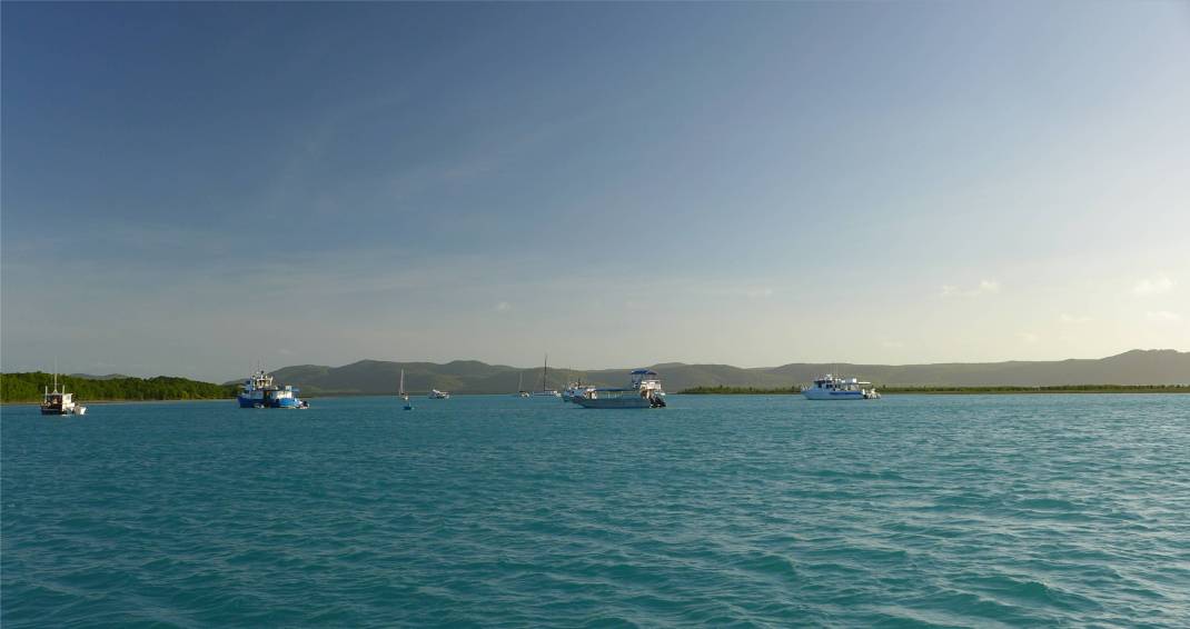 Heute waren wir wieder auf Thursday Island, ist ja schließlich Donnerstag. Wir wollen ausreisen. Beim Zoll ist niemand, aber ein Telefonat ergibt, dass wir in einer Stunde vorbeikommen können. In der Wartezeit essen wir eine Kleinigkeit, das Ausklarieren verläuft schnell, freundlich und problemlos, noch ein kleiner Spaziergang und schon fährt die Fähre wieder nach Horn Island. Am Anleger sehen wir einen großen Hai, noch ein Grund hier im etwas trüben Wasser besser nicht zu baden. Es ist heute sehr windig. Die Dinghy-Fahrt zurück an Bord und das Verstauen von Außenborder und Boot ist etwas mühsam. Aber nun sind wir bereit. Morgenfrüh geht’s los. Wir verlassen Australien und segeln nach Osttimor. Etwa 1000 Meilen liegen vor uns, wir rechnen mit etwa einer Woche Reisezeit.