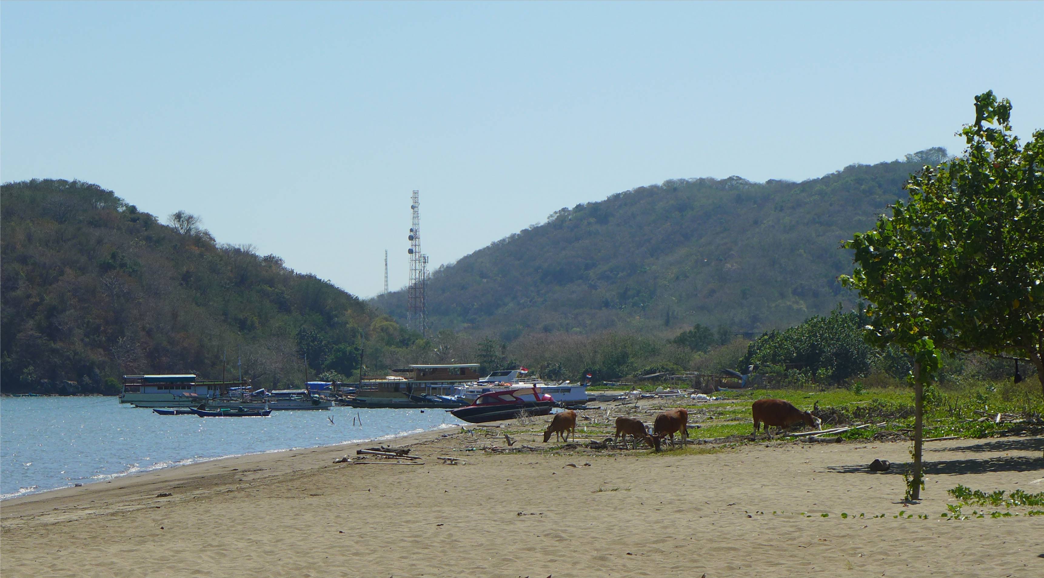 Wir ankern in der Nähe von Labuan Bajo. Das Fischerdorf hat sich in den letzten Jahren zu einer kleinen Stadt gemausert. Nobbi war vor 20 Jahren hier und erkennt den ehemals staubigen Ort kaum wieder. Unglaublich viele Schiffe liegen hier vor Anker. Die Pinisis, die zu Tourbooten umgebaut sind, moderne Motoryachten, kleine Holzboote, Fähren und Boote für Tagestouren. Labuan Bajo ist der Ausgangspunkt für die Touren in den Nationalpark. Viele Boote scheinen nicht gebucht zu sein, sonst wären sie ja unterwegs. Am Besucherzentrum war uns bereits aufgefallen, dass viele Ausflugsschiffe nur mit wenigen Gästen unterwegs sind. Ob es so ein großes Angebot gibt, oder ob der Tourismus nach Covid nur langsam wieder anläuft, wissen wir nicht. Es gab Pläne die Eintrittsgebühr in den Nationalpark zu verzehnfachen. Das wurde bisher nicht umgesetzt, wirkt aber sicher abschreckend. Auf jeden Fall ist Labuan Bajo voller Touristen von überall her.