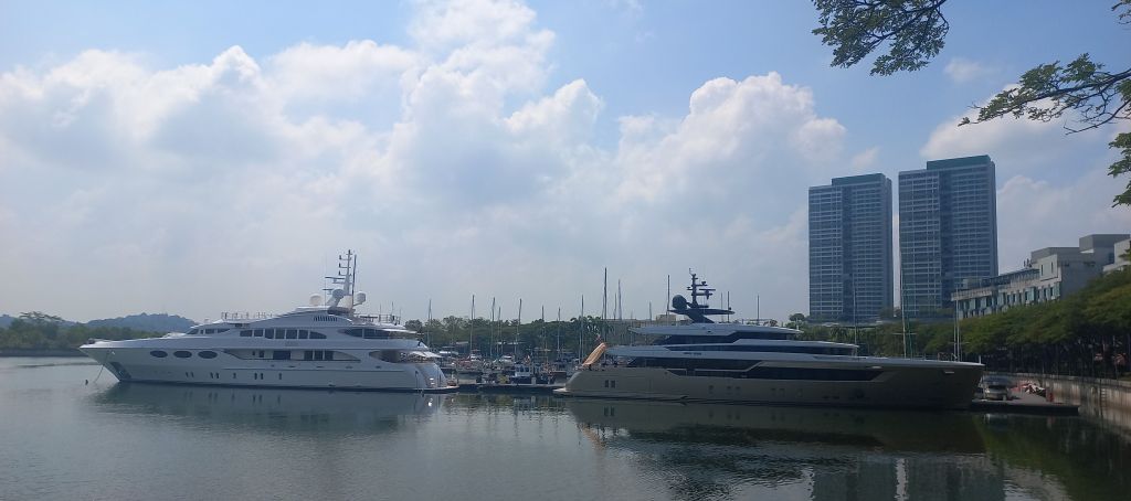Die Puteri Harbour Marina ist eigentlich ganz nett, hat aber den Ruf, dass hier absolut nichts los sei. Der Komplex zu dem die Marina gehört steht zum Teil leer. Es gibt einige Restaurants, aber in der Ladenzeile sind fast alle Räume nicht vermietet und noch im Rohbauzustand. Auch scheinen nicht alle Wohnungen in den Hochhäusern bewohnt zu sein. In der Umgebung sieht es ähnlich aus. Hohe Wohntürme, die meisten recht neu, ein paar Bauruinen, wenige Läden und nur vereinzelnd auch einige Menschen auf der Straße. Die Versorgungslage ist trotzdem nicht schlecht: zu Fuß kann man zwei Supermärkte und mehrere Restaurants erreichen. Die Marina ist in gutem Zustand, es gibt breite Stege und erfreulich schöne Duschen.
