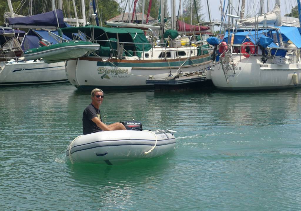 Wir hatten keine Lust mehr mit zwei kaputten oder nur etwas funktionierenden Außenbordern durch die Gegend zu fahren. Der Honda hat uns schon in Thailand verlassen, nachdem er dort nicht mehr anspringen wollten. Er hatte schon diverse Reparaturen hinter sich und außerdem ein stolzes Alter erreicht. Der kleine Suzi hatte letztes Jahr auf dem Rückweg vom Einklarieren in Vanuatu einen Getriebeschaden, so zumindest unsere Vermutung. Wir hatten ihn reparieren lassen, anscheinend war diese Reparatur nur eingeschränkt erfolgreich. Erst lief er nur zögerlich, dann hat Nobbi zwei Stunden an ihm herumgeschraubt, er lief, um nach etwa 50m wieder den Dienst zu quittieren. Wir haben ihn als Ersatzteilspender an einen Nachbarn verschenkt, der den gleichen Motor hat.